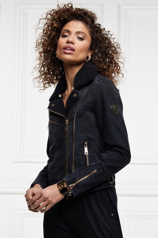 Denim Biker Jacket (Washed Black Sherpa)