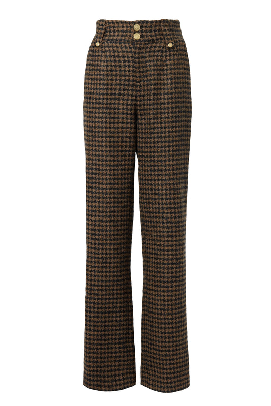 High Waisted Straight Trouser (Chocolate Houndstooth)