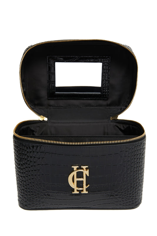 Travel Makeup Bag (Black Croc)