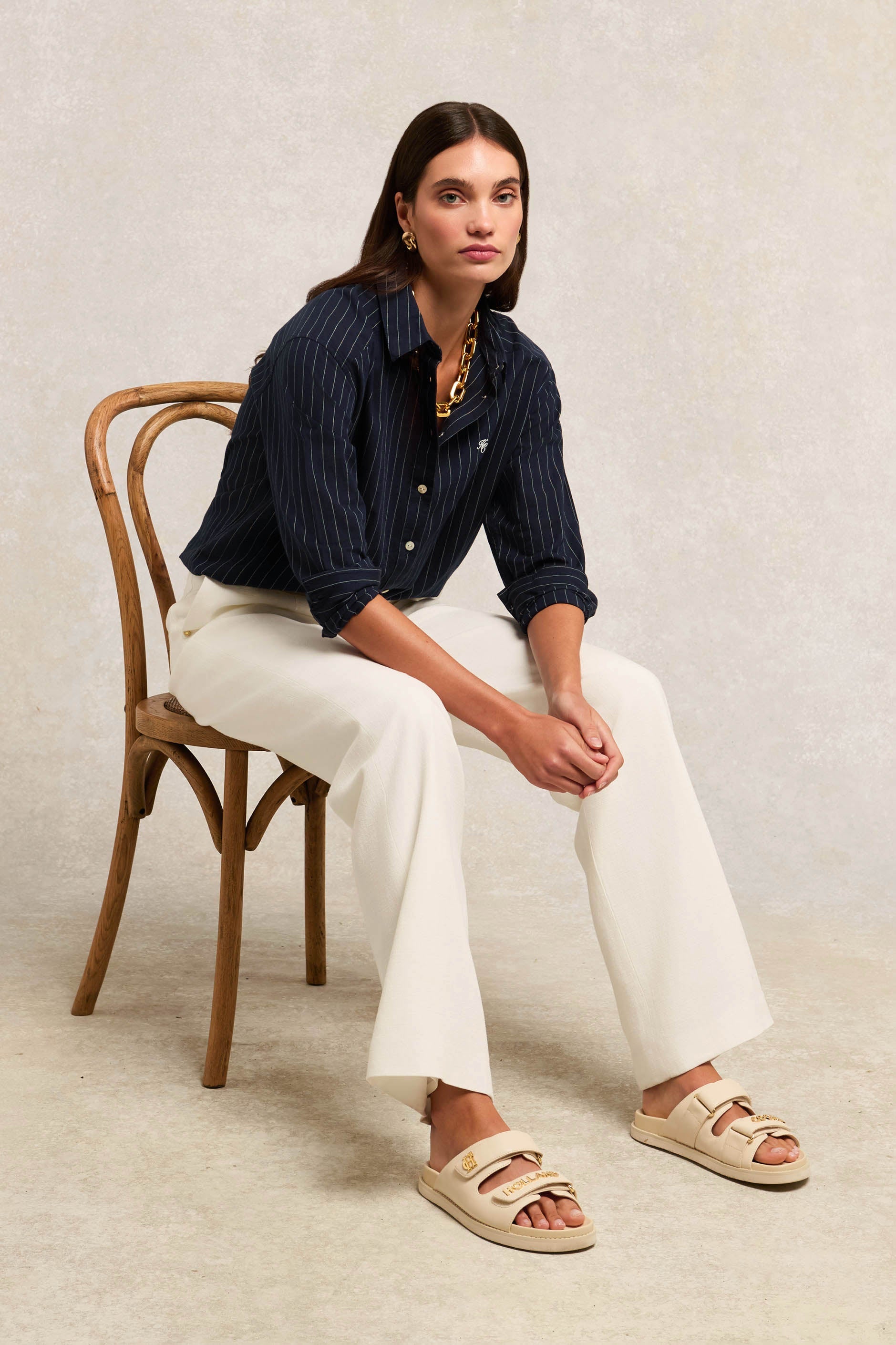 Effortlessly refined, the Abbot Slide embodies casual luxury. Crafted from premium PU materials, these sophisticated slides feature our signature gold lettering and distinguished HC pin detailing. The plush padded footbed ensures superior comfort, while the cream
