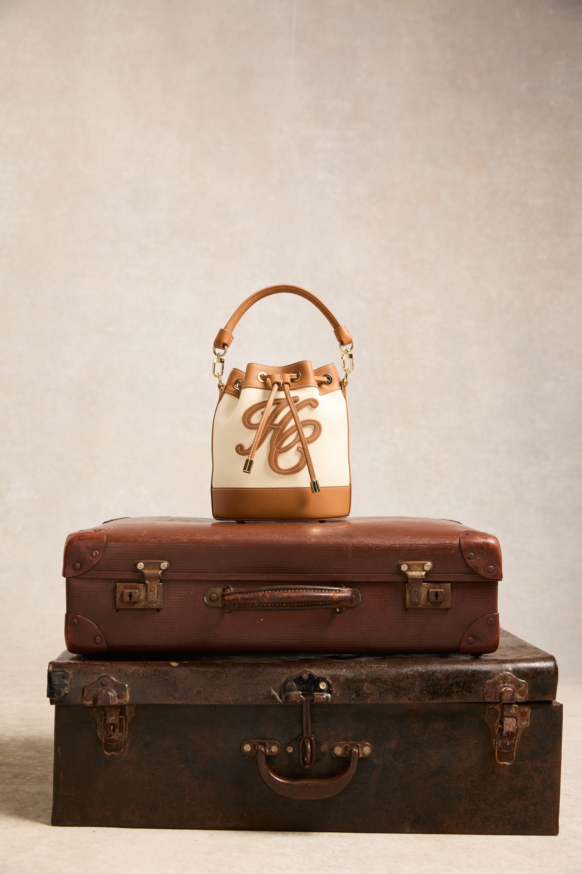 The Amalfi Bucket Bag embodies effortless sophistication, crafted from premium canvas with luxurious tan leather trim. This miniature masterpiece showcases our signature attention to detail with chunky contrast stitching and our distinctive leather patch. The fully adjustable strap features our iconic gold-toned hardware and aglets, elevating this everyday essential.