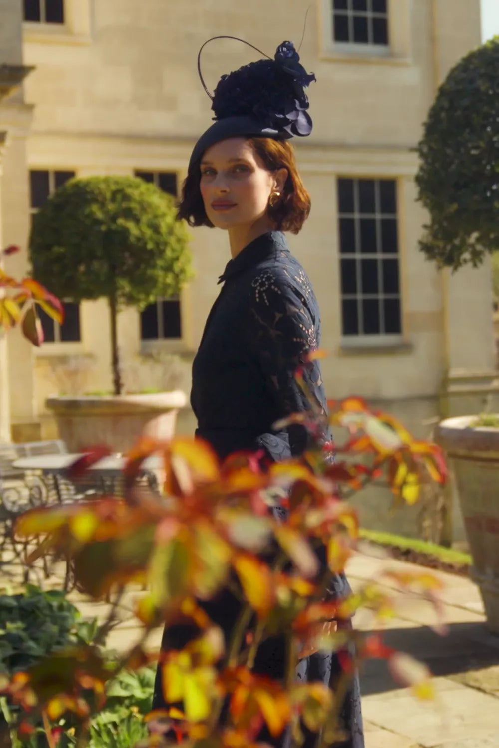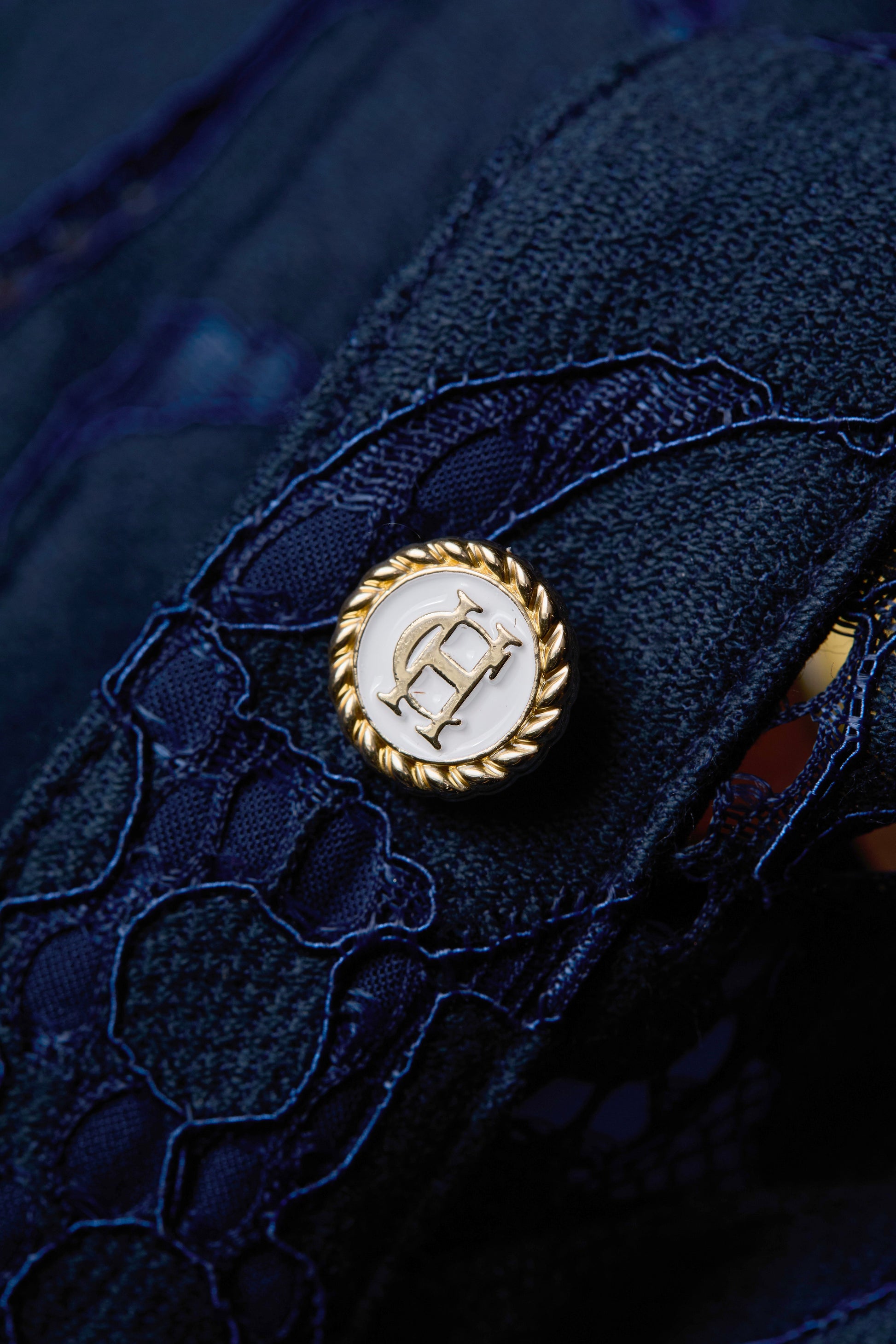 Crafted from a large-scale floral cotton blend lace, the dress is fully lined through the lower body and skirt for effortless wearability. Thoughtful details like princess seams, a self-fabric belt at the waistline, and a button-down placket with signature gold enamel buttons enhance its tailored finish.