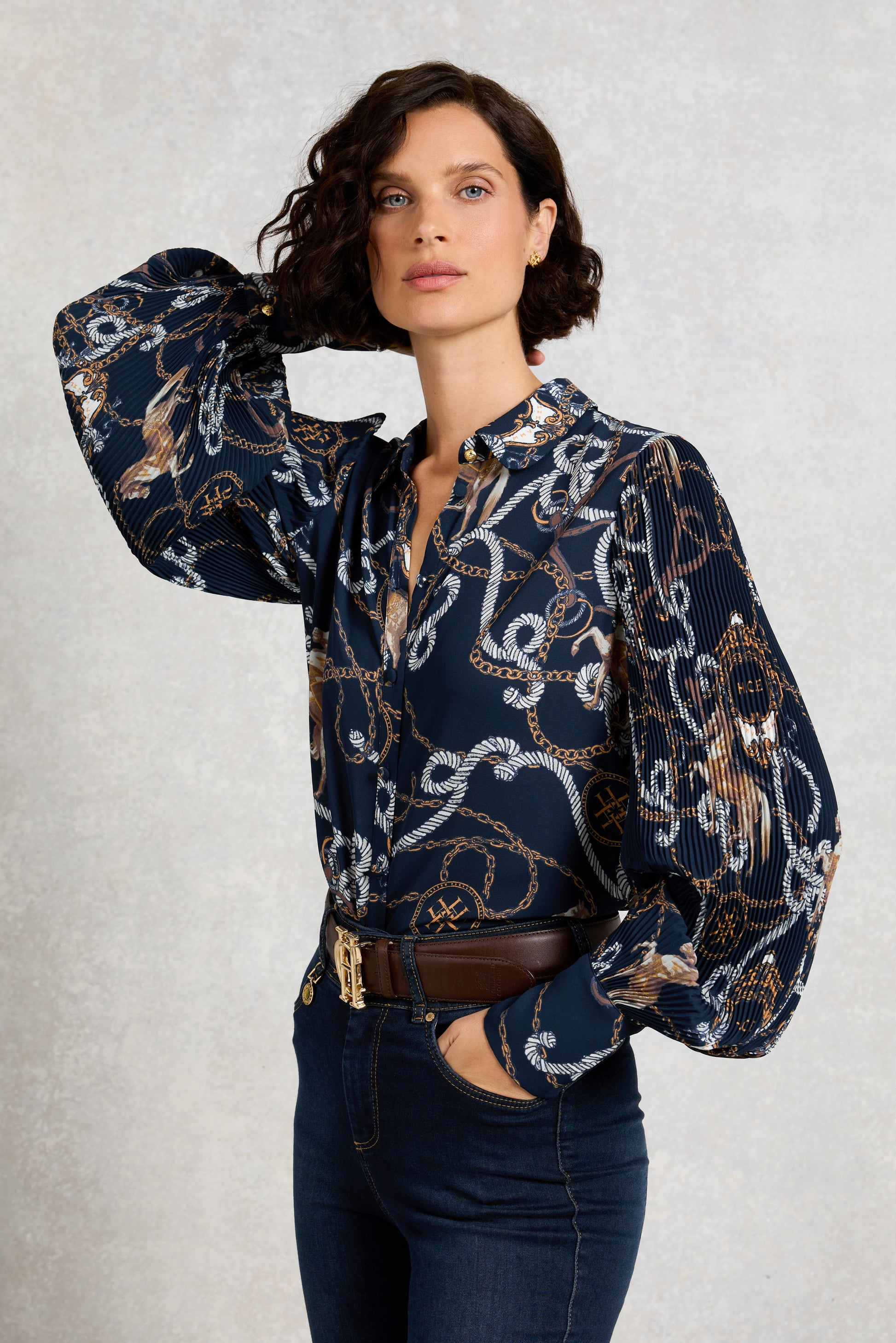 A refined take on statement shirting, the Beau Shirt features our exclusive country horsebit print, bringing a heritage-inspired charm to this timeless silhouette. Crafted from lightweight fabric with a classic fit, it’s designed with a softly curved collar and a full front placket detailed with self-covered buttons for a seamless finish.