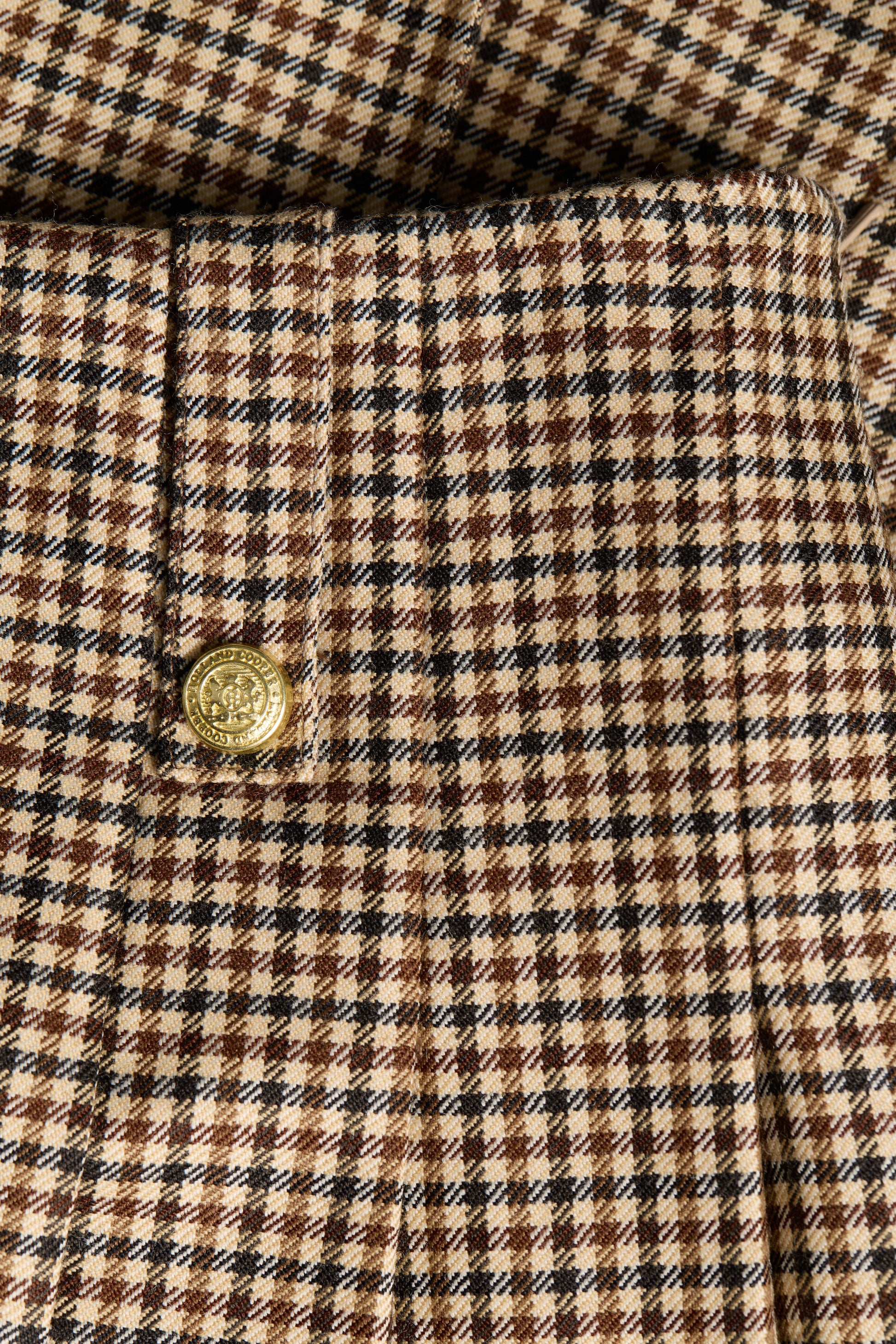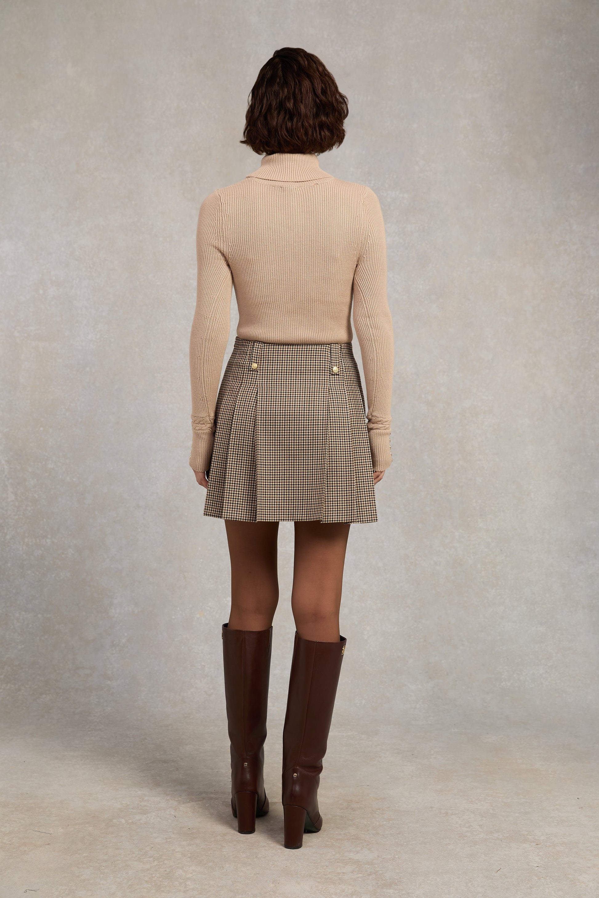 Our new tweed pleated mini skirt is an enduring, timeless staple. Made from wool, it features delicate pleating for a flattering silhouette. With belt loops and signature rivets adding a touch of modern detail, this mini skirt is the perfect blend of classic style and heritage tailoring.