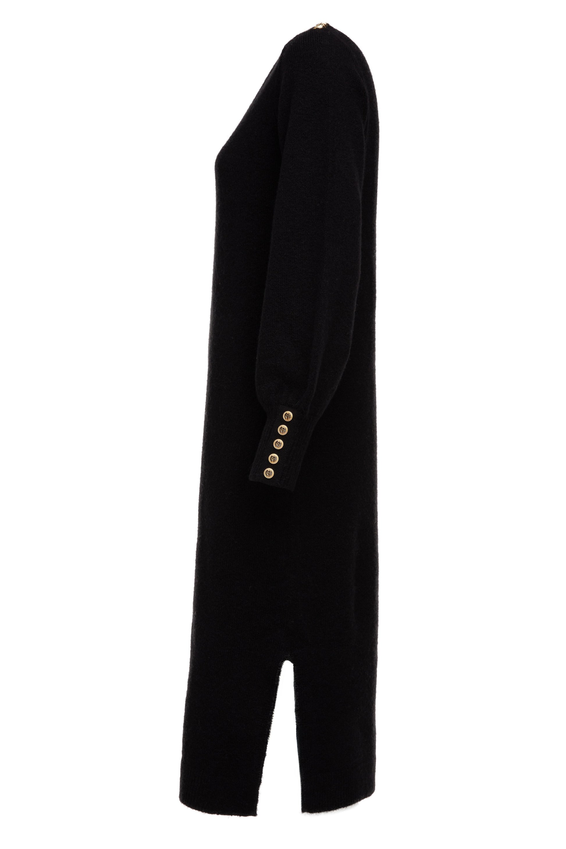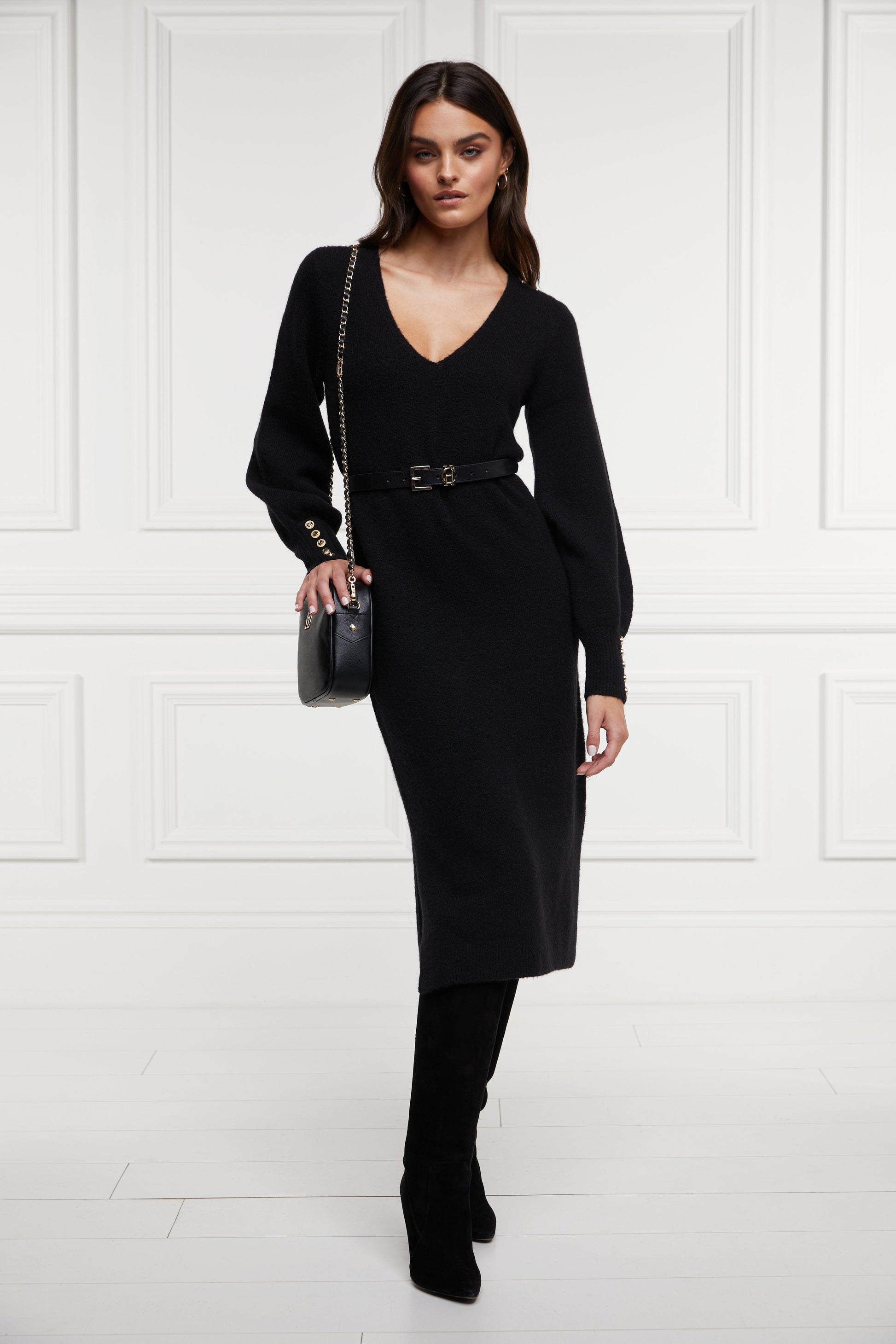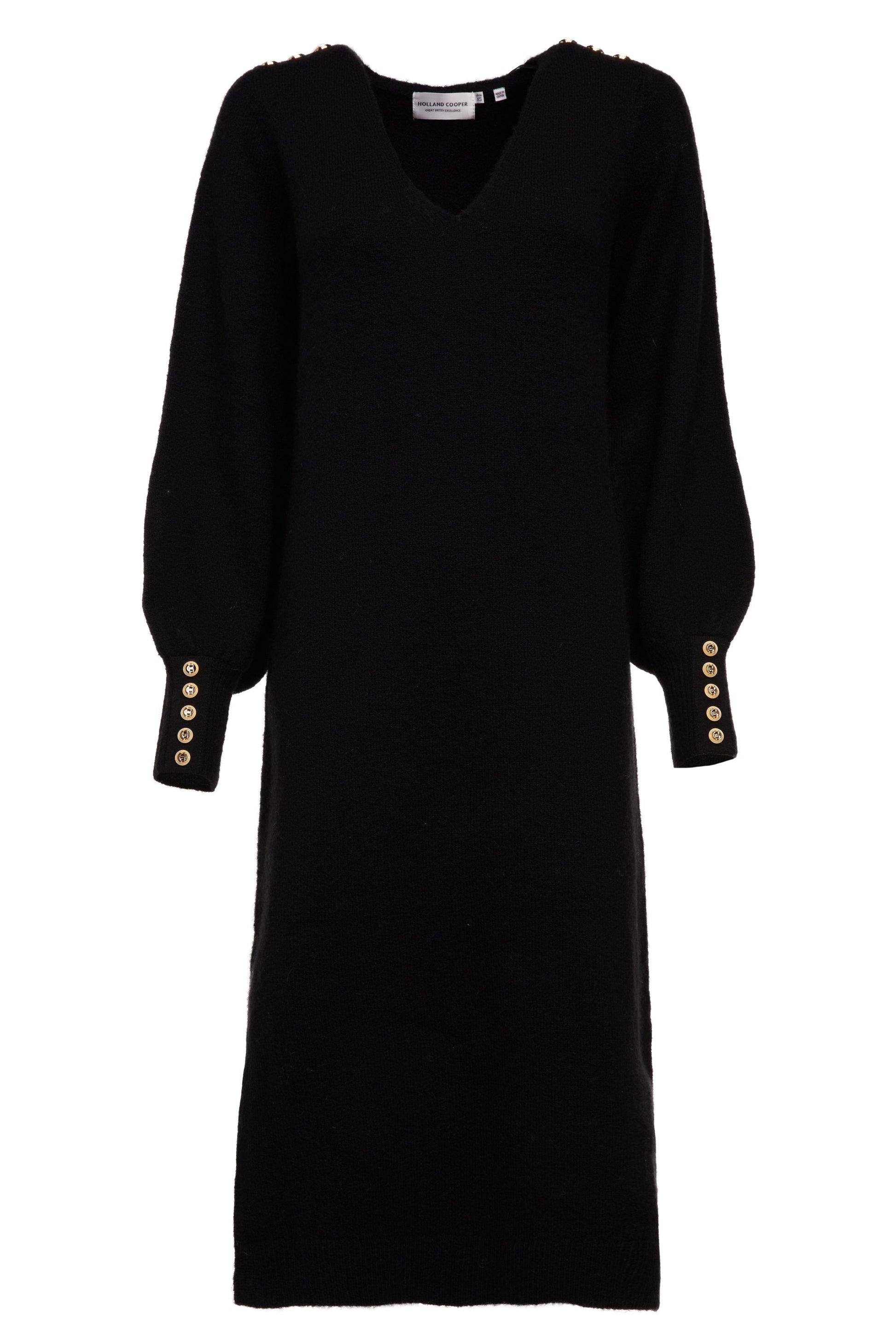 Designed with a relaxed fit with a low v-neck, this dress has been crafted from a super soft wool blend. With voluminous sleeves and cuffed finish for a feminine silhouette. Crafted with a midi length, this dress wears perfectly with both flats and boots for the winter season. Detailed with our iconic gold hardware.