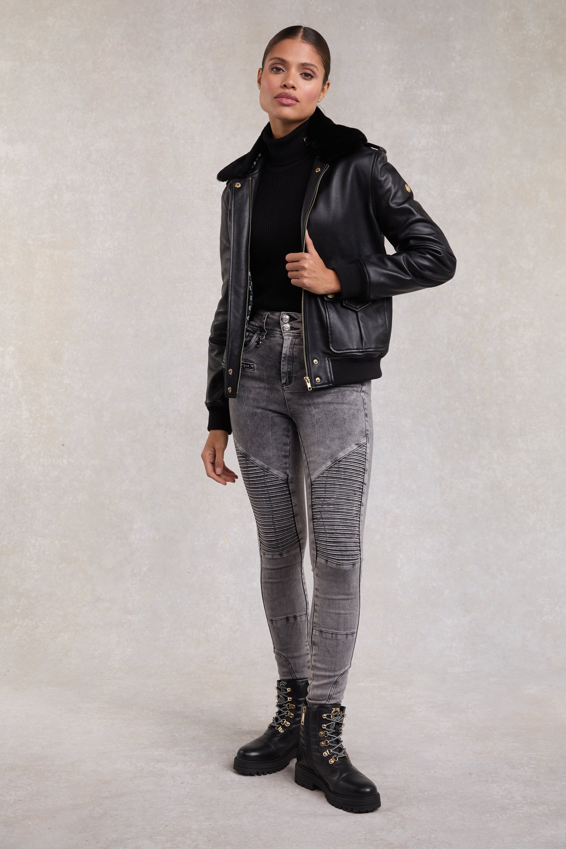 Our signature Biker jeans are woven with an ample amount of stretch to sculpt and flatter your silhouette to the max. Designed to sit high on the waist but cleverly designed to ensure they do not cut in. Tuck your sweater or blouse into the sculpting high-rise waist for an extra stylish look and feel. Designed to fit multiple leg lengths.