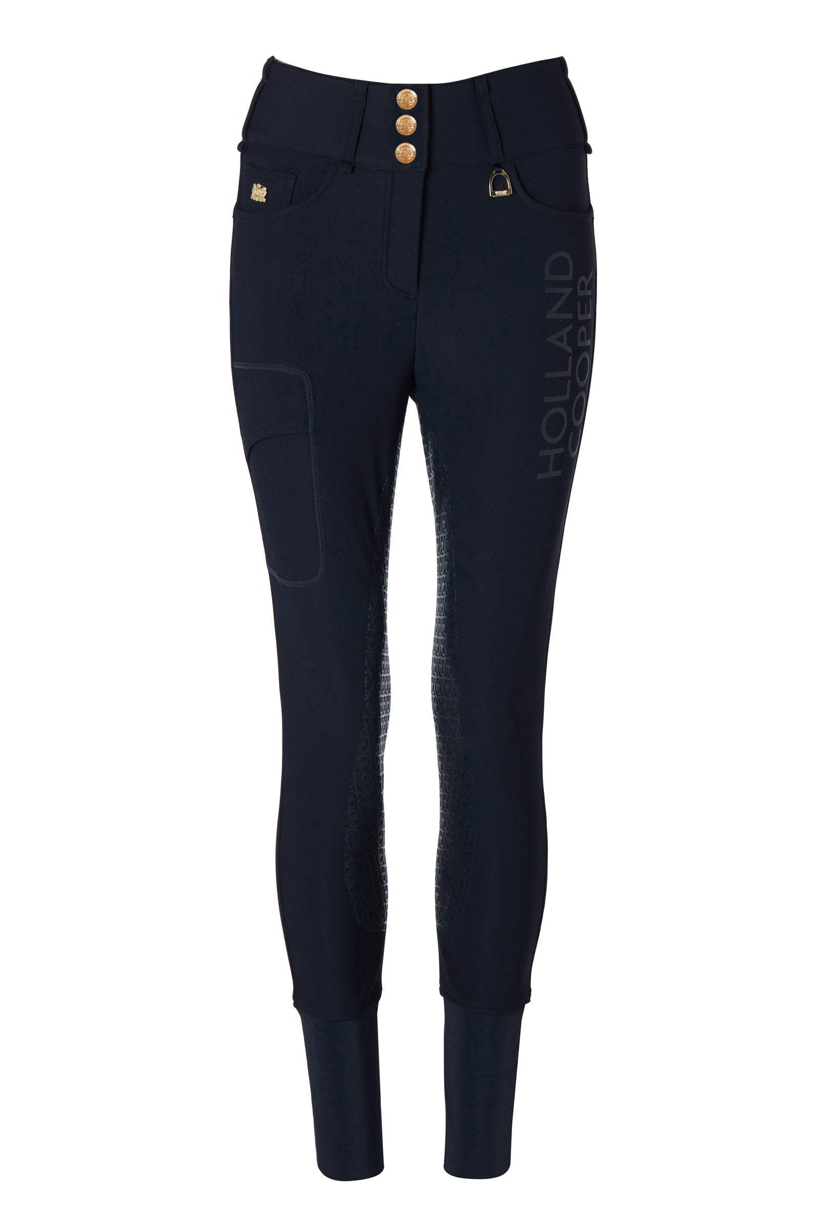 Created from a 4-way stretch jersey fabric, these thermal breeches have been designed to feel comfortable like a legging but ensure the practicality and style of breeches. Designed with a water & stain resistant finish, the HC monogram print provides increased control in the saddle. Detailed with lightweight jersey panels to lower hem to enable both comfort & reduce bulking when wearing riding boots. Finished with a reinforced waistband, phone pocket to the thigh and our signature gold hardware.
