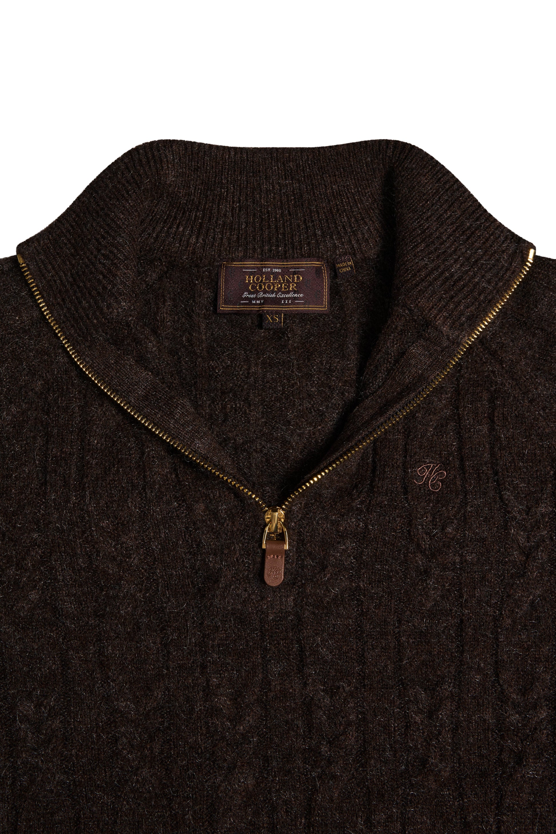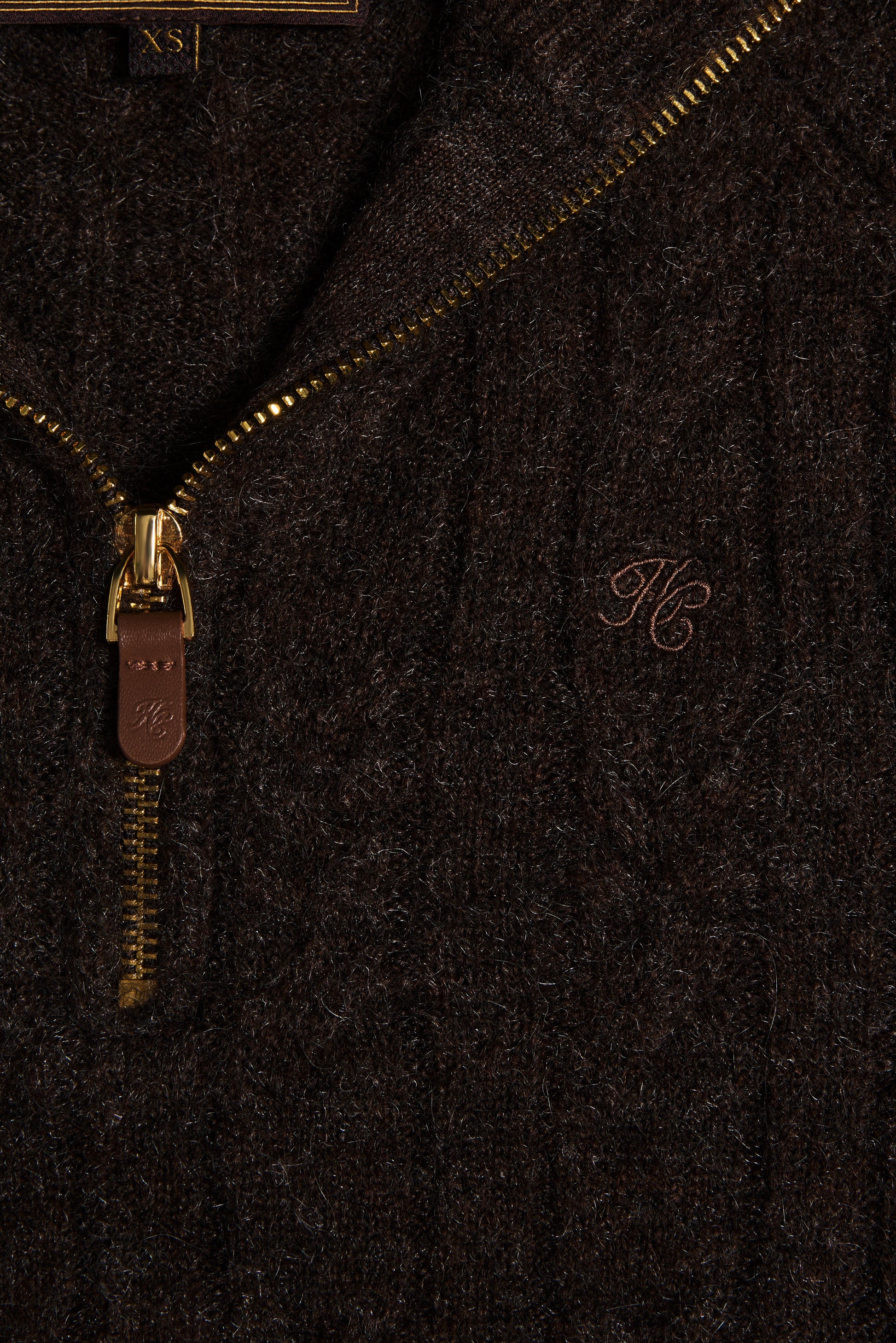 Crafted from a soft mohair blend, this knit features a quarter zip framed by delicate cabling, while raglan sleeves and slim-fitting arms create a flattering, modern silhouette. Subtle hardware at the cuffs and a concealed zipper add refined finishing touches, making this knit the perfect wardrobe essential for layering in cooler seasons.
