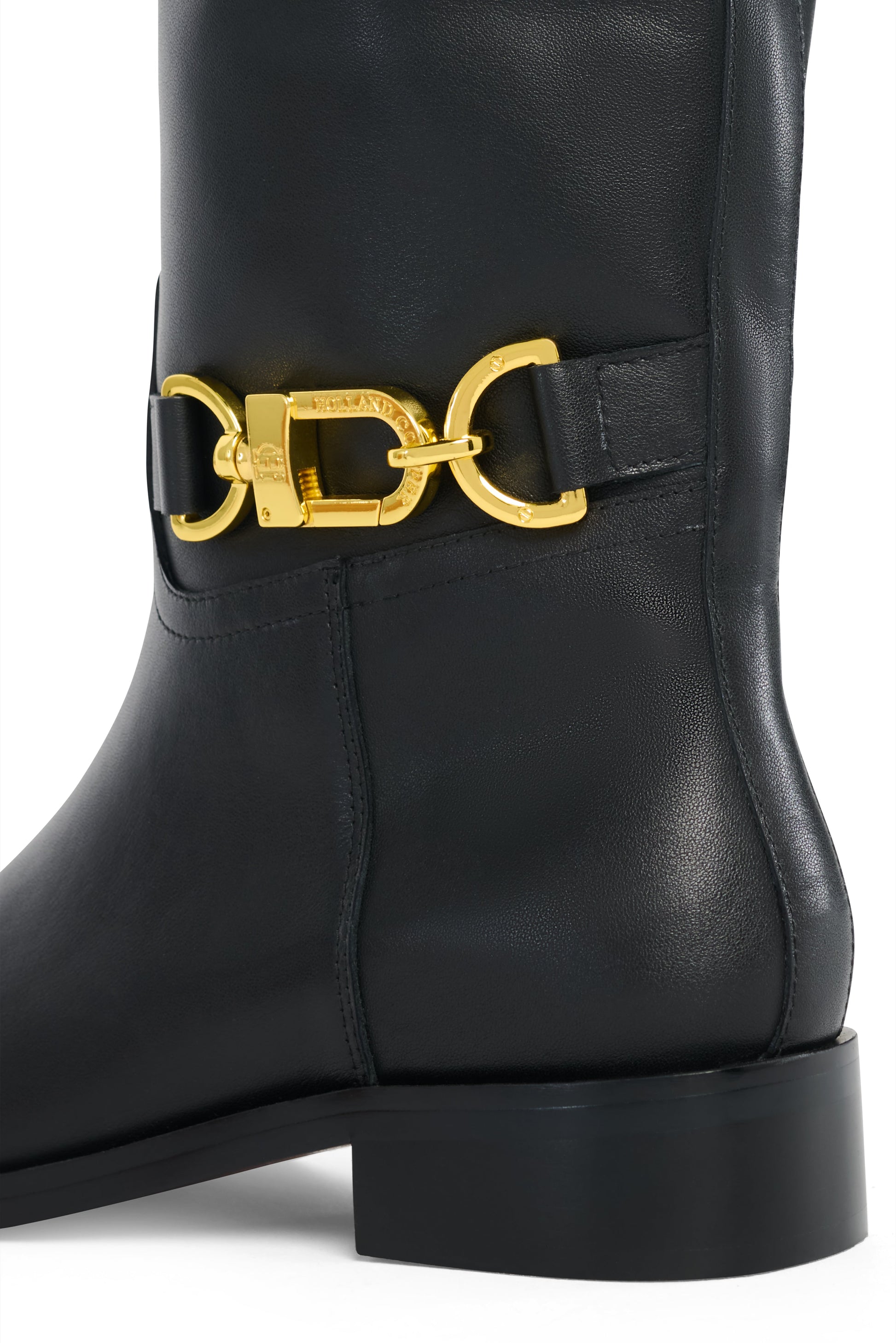 A classic equestrian-inspired design, the Bridle Boot is crafted from premium cow leather with a contrasting top leather panel for subtle visual interest. Featuring chunky branded gold hardware and a beautifully finished leather outsole, this knee-high riding-style boot is fully leather lined for comfort and durability. A refined wardrobe staple, it effortlessly blends timeless style with functional performance.