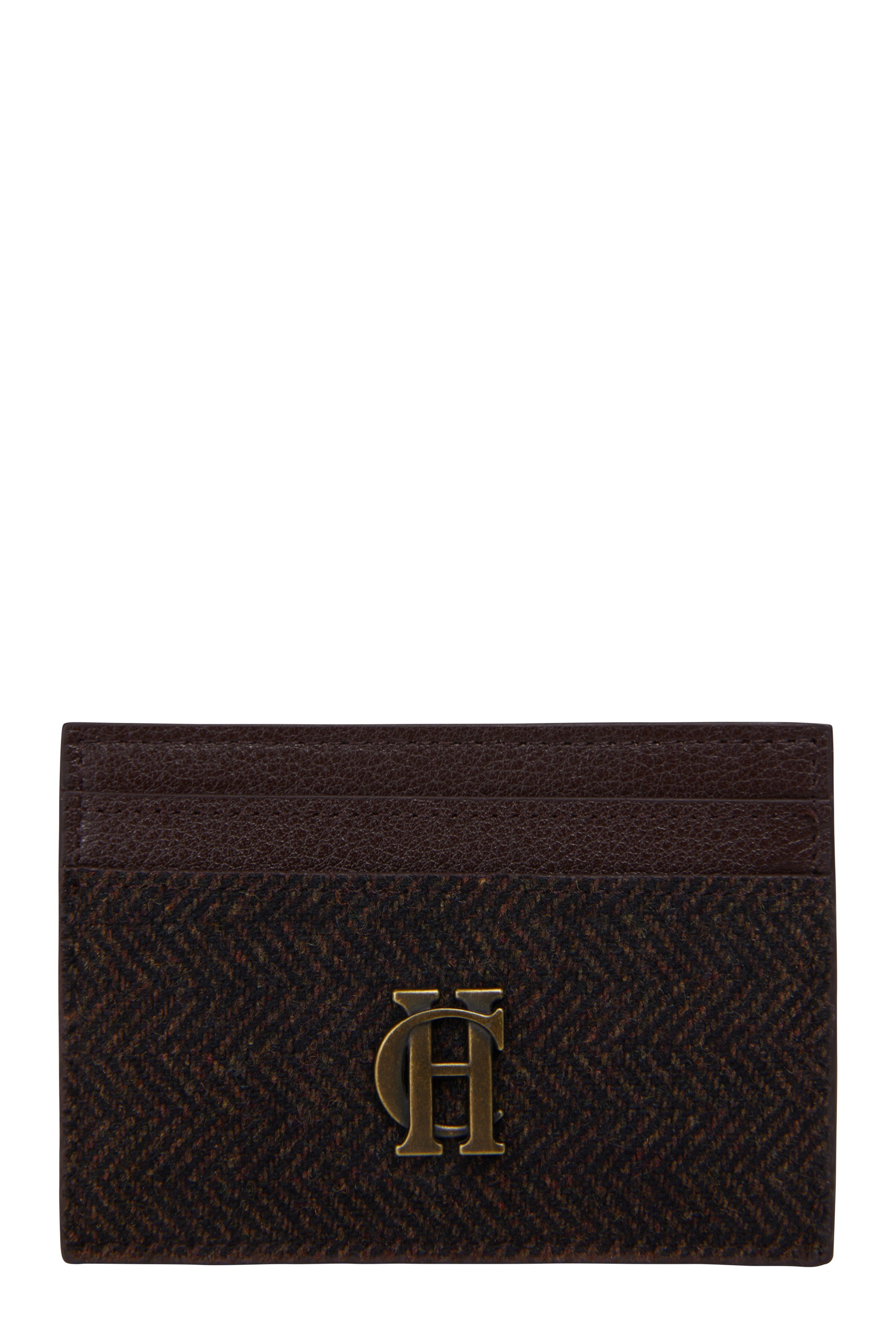 Hand crafted in a beautiful leather and heritage fabric combination, this card holder is a sleek alternative to a bulky wallet. With a slim design with four card slots. Elegantly detailed with HC branding and hardware