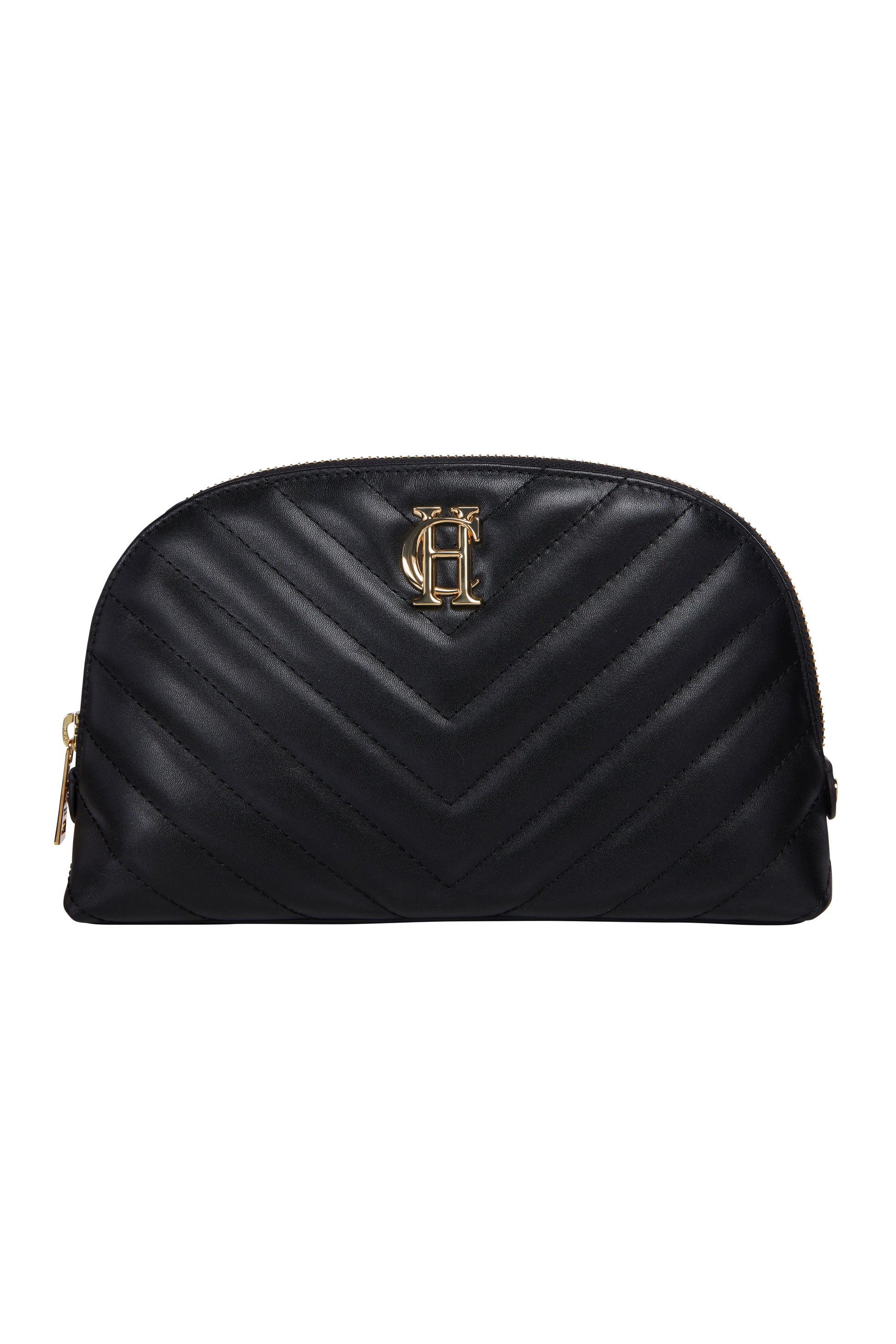 Hand crafted from premium leather with a chic quilted design, the durable zip opens up to reveal a spacious compartment for your makeup everyday essentials. Designed to fit neatly into your handbag detailed with our iconic HC branding.