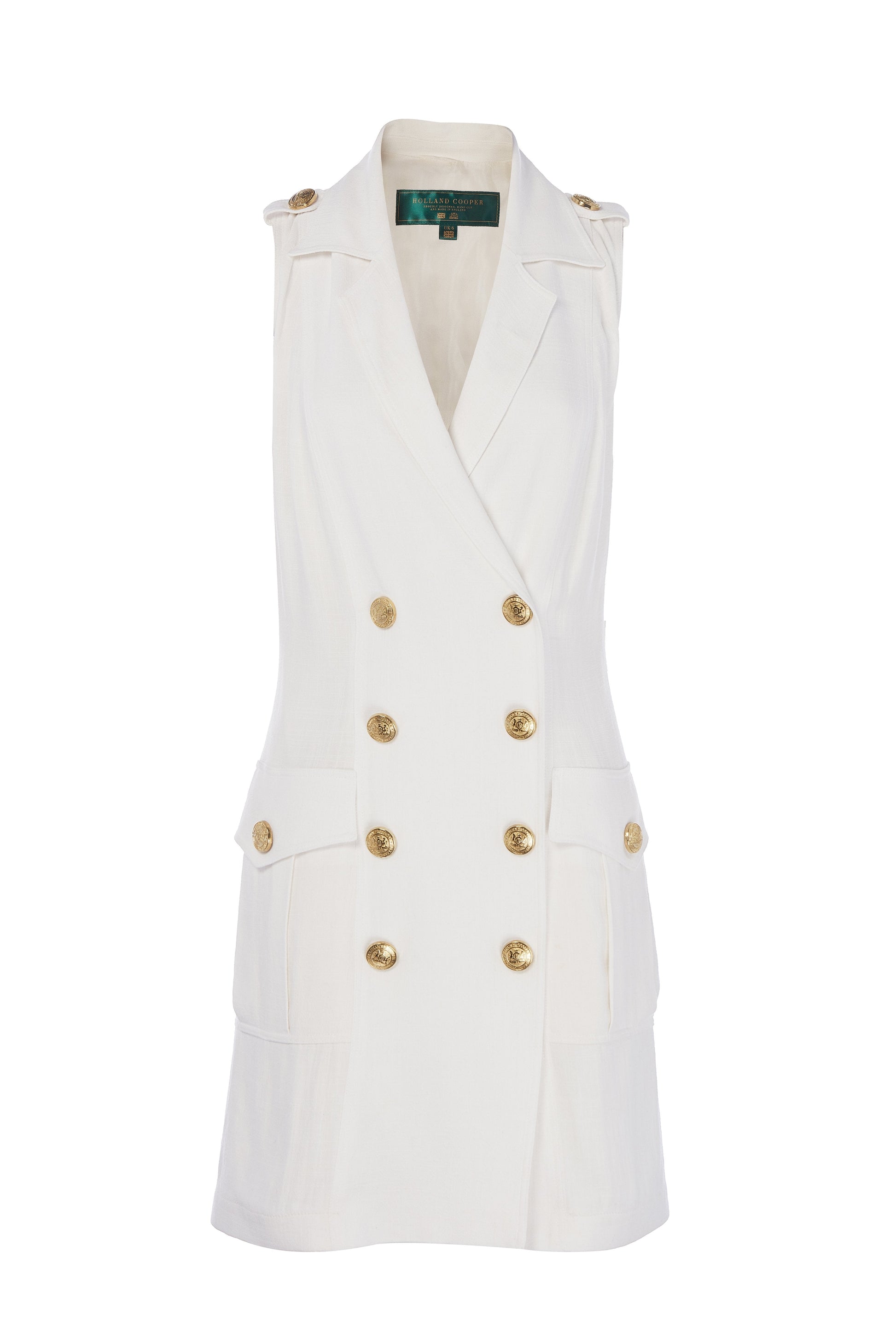 This product has been hand cut and made in the UK. Effortless and elegant, the Chelsea Dress evokes warm weather inspirations. The lightweight linen composition and tailored fit makes for the perfect understated piece. Its sleek sleeveless silhouette, double breasted construction and signature HC snaps adds to its flattering definition. Pair with a matching Panama Hat for a poolside companion. This product is fastened at the front by our premium popper fastening and fits true to size.