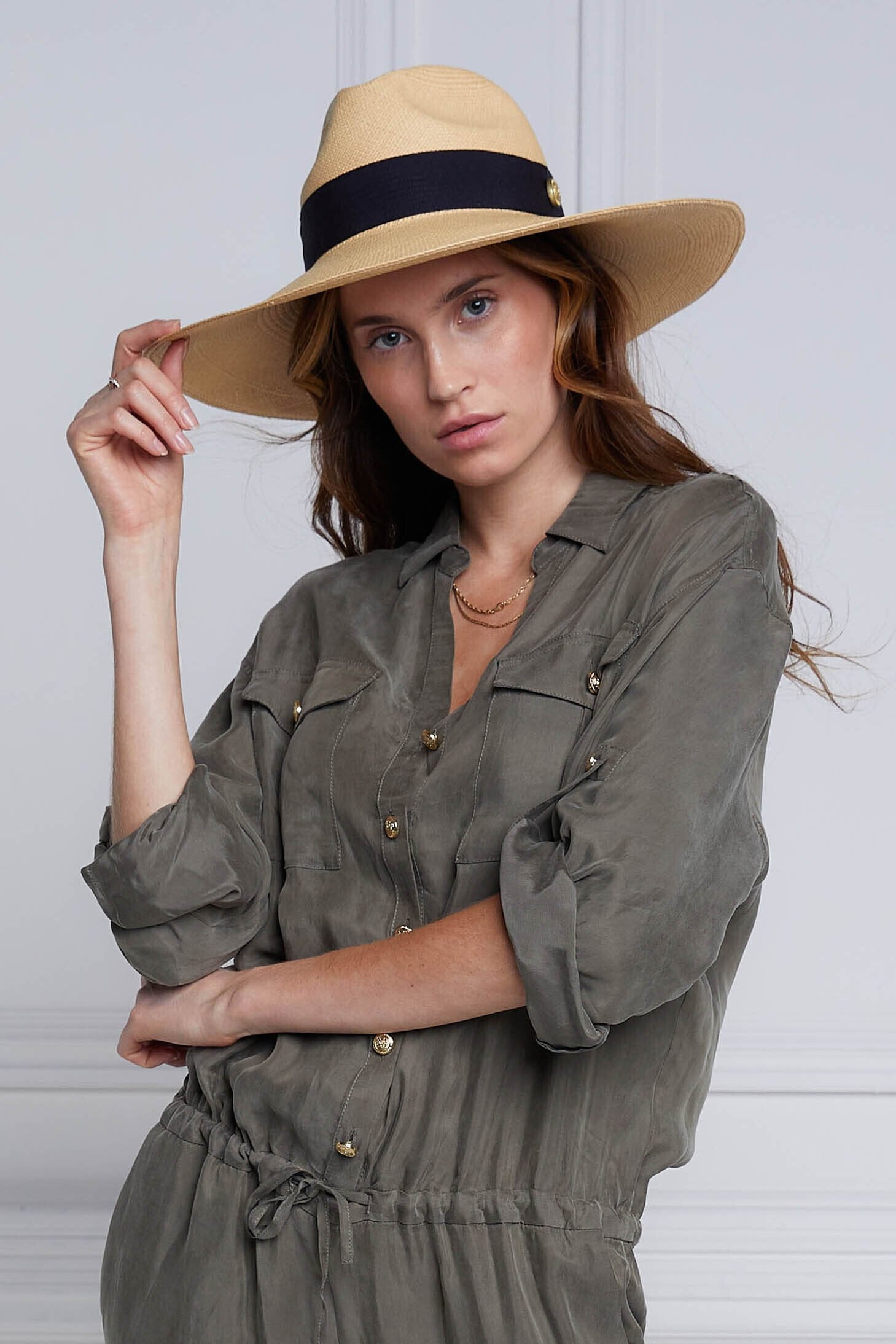Create an elegant poolside statement when you wear this timeless sun hat. Each Jessica Hat is woven by hand and dyed in Ecuador using the finest Toquilla straw, before being blocked, bound and trimmed in the Cotswolds. The quintessential Jessica Hat is a symbol of style and elegance.