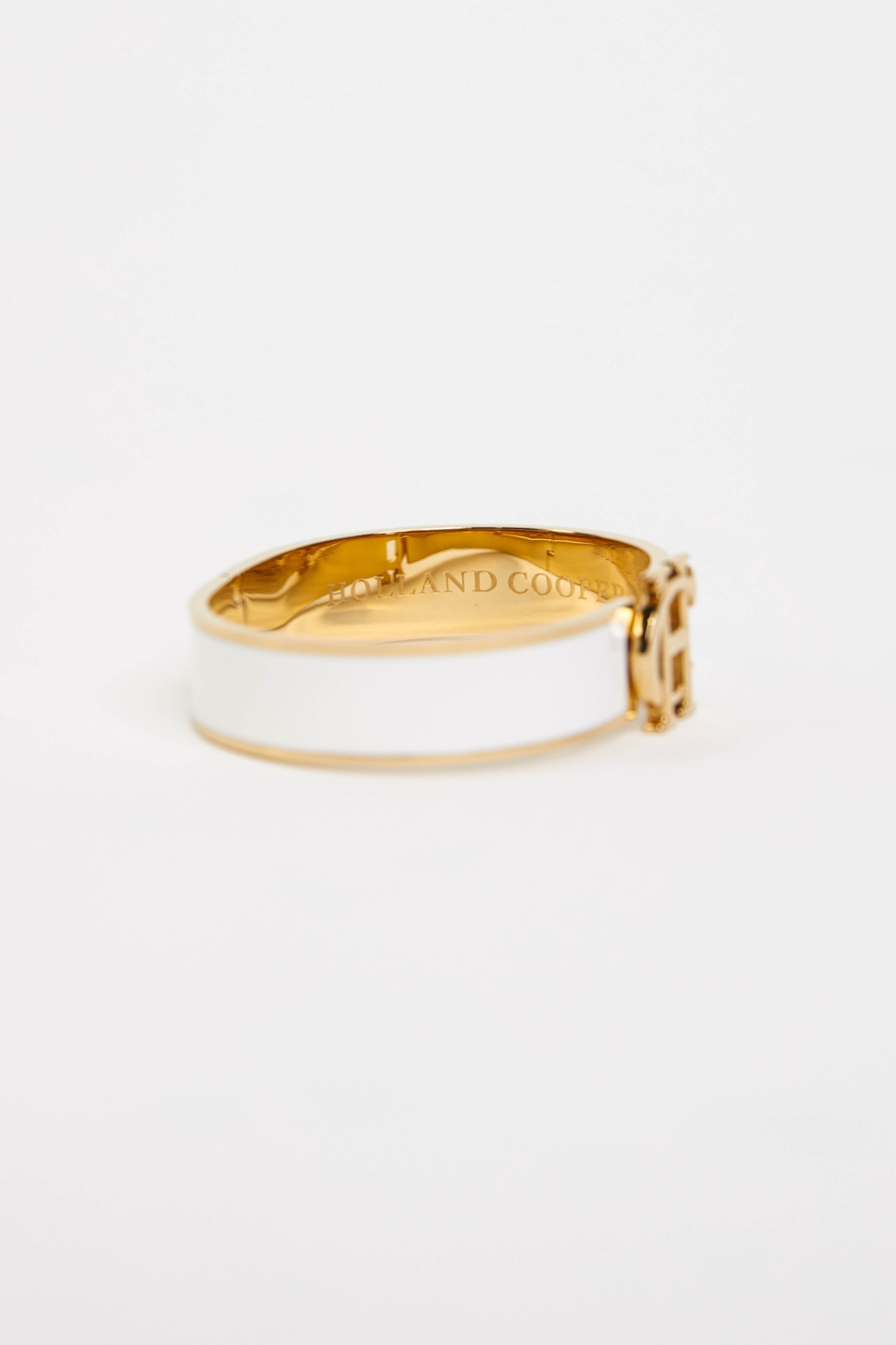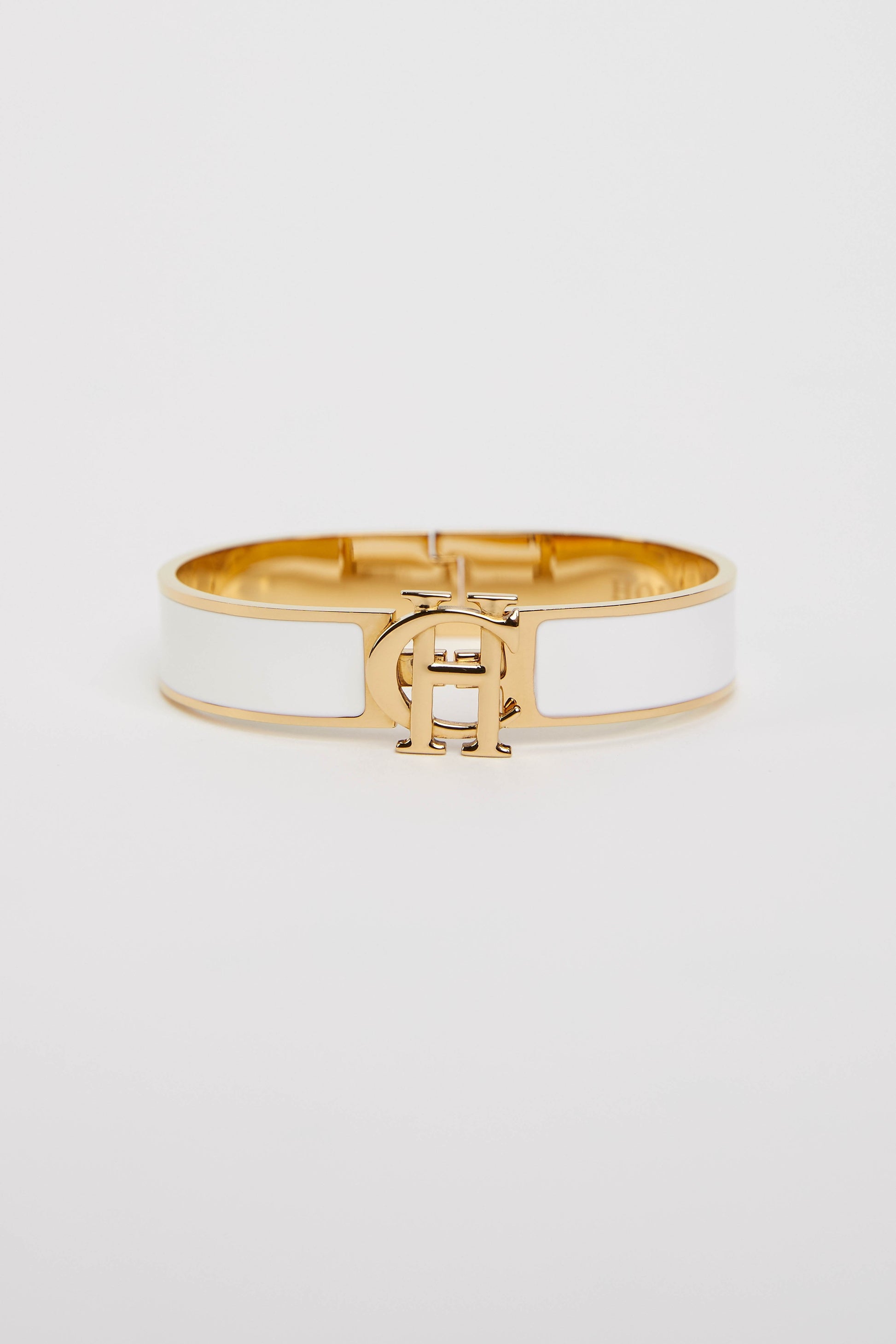 The HC Bracelet was designed with a minimalist aesthetic in mind, displaying clean lines and modern curves for a sleek and stylish accessory. Centred around a signature ‘HC’ initial clasp and tied together with a coloured enamel band, it is the perfect addition every look.