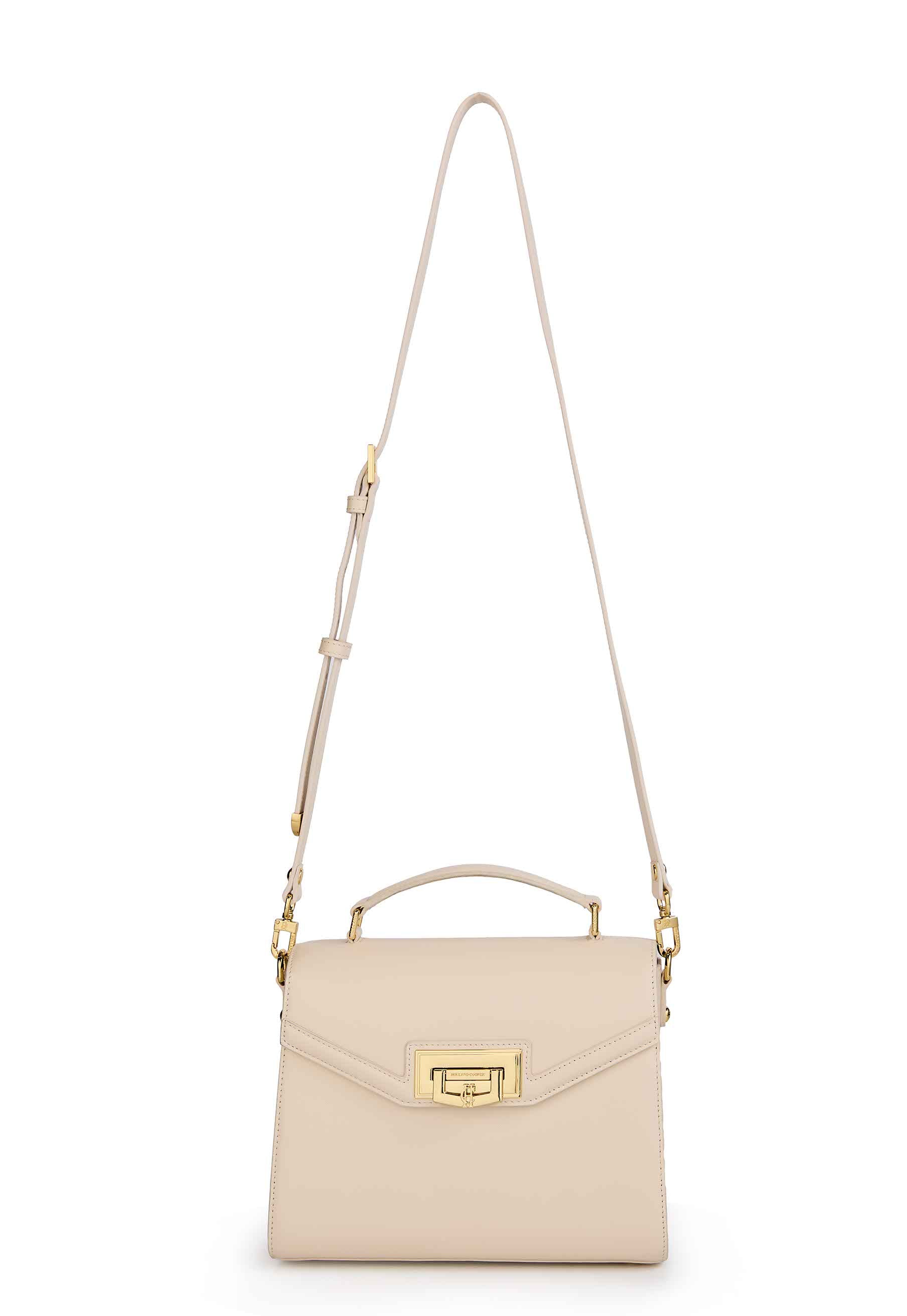 Handcrafted from the finest leather with a compact top handle design, this bag has been beautifully crafted with a vintage, yet contemporary aesthetic. With a detachable cross-body strap with a large internal compartment, the internal zip pocket makes for the safe keeping of your valuables. Synonymous with Holland Cooper, each bag has been elevated with signature gold hardware and a delicate gold clasp.