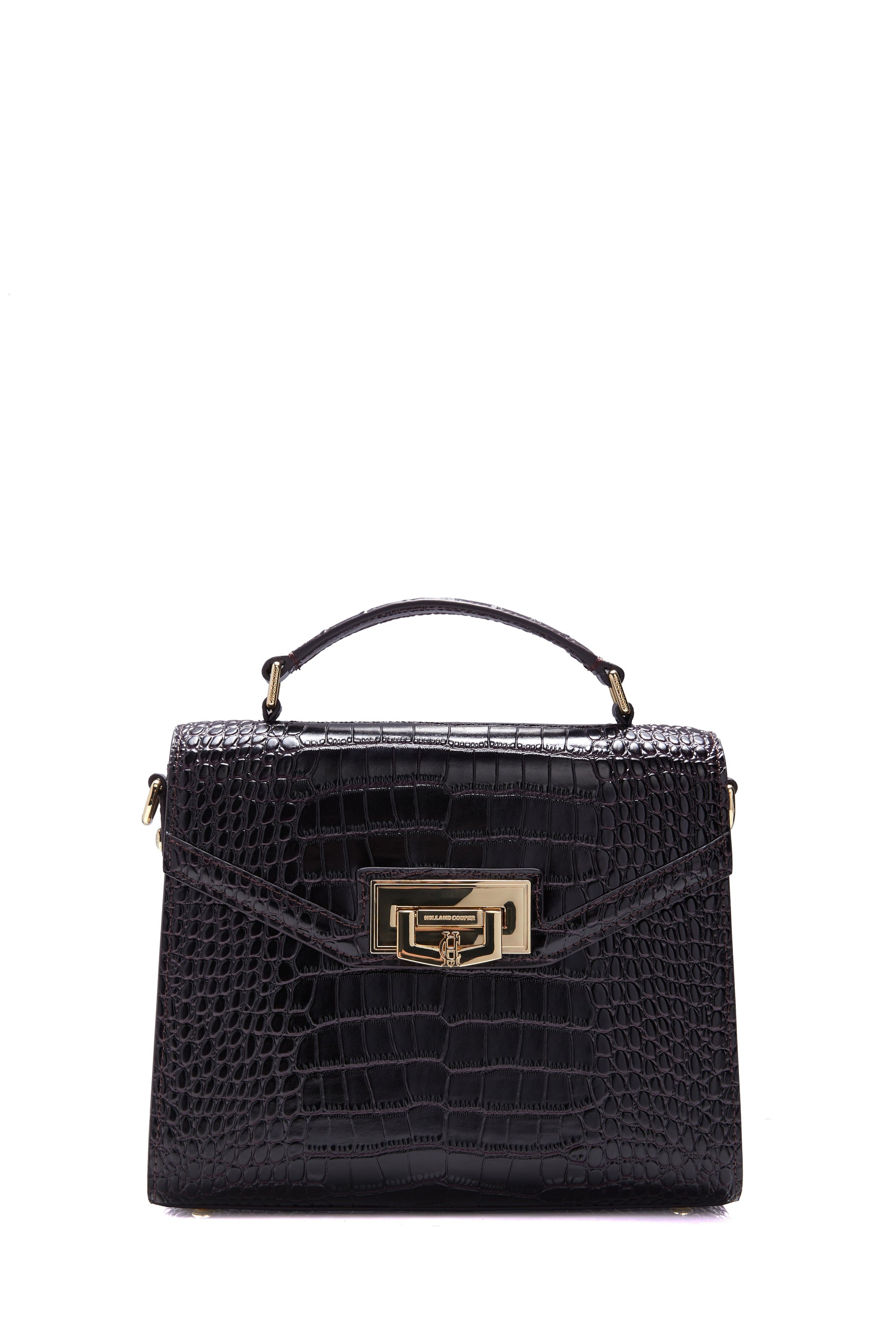 Handcrafted from the finest croc-embossed leather with a compact top handle design, this bag has been beautifully crafted with a vintage, yet contemporary aesthetic. With a detachable cross-body strap with a large internal compartment, the internal zip pocket makes for the safe keeping of your valuables. Synonymous with Holland Cooper, each bag has been elevated with signature gold hardware and a delicate gold clasp.