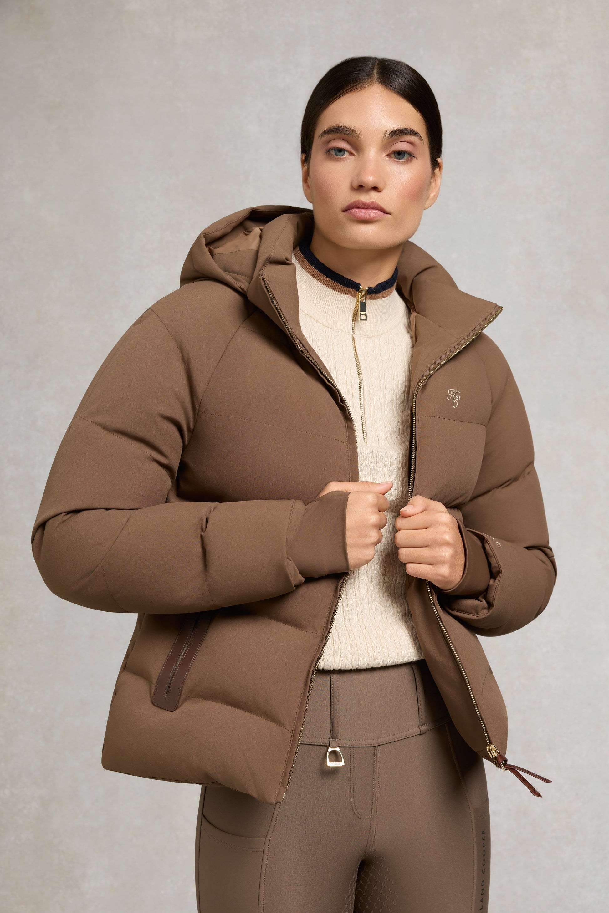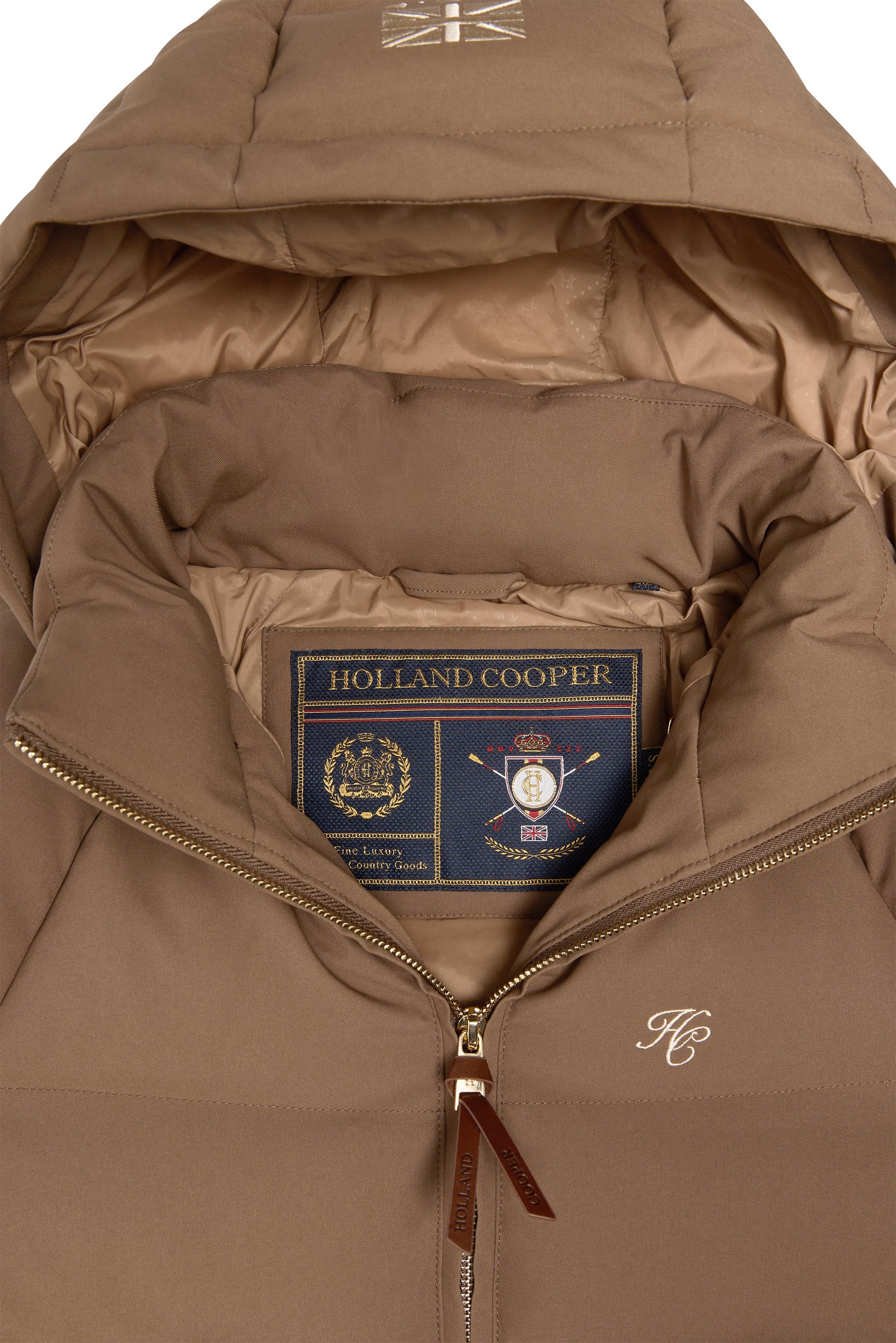 A masterpiece of refined elegance and exceptional performance. This luxurious jacket is meticulously crafted to offer both style and functionality. Its water and wind-resistant shell ensures you stay protected from the elements, while the contrast fabric panelling add a touch of Holland Cooper refinement, making it a standout piece for any occasion. With a practical detachable hood and leather zip pulls, this jacket is as versatile as it is stylish. Signature embroidered detailing on the sleeves and chest completes this distinguished outerwear.