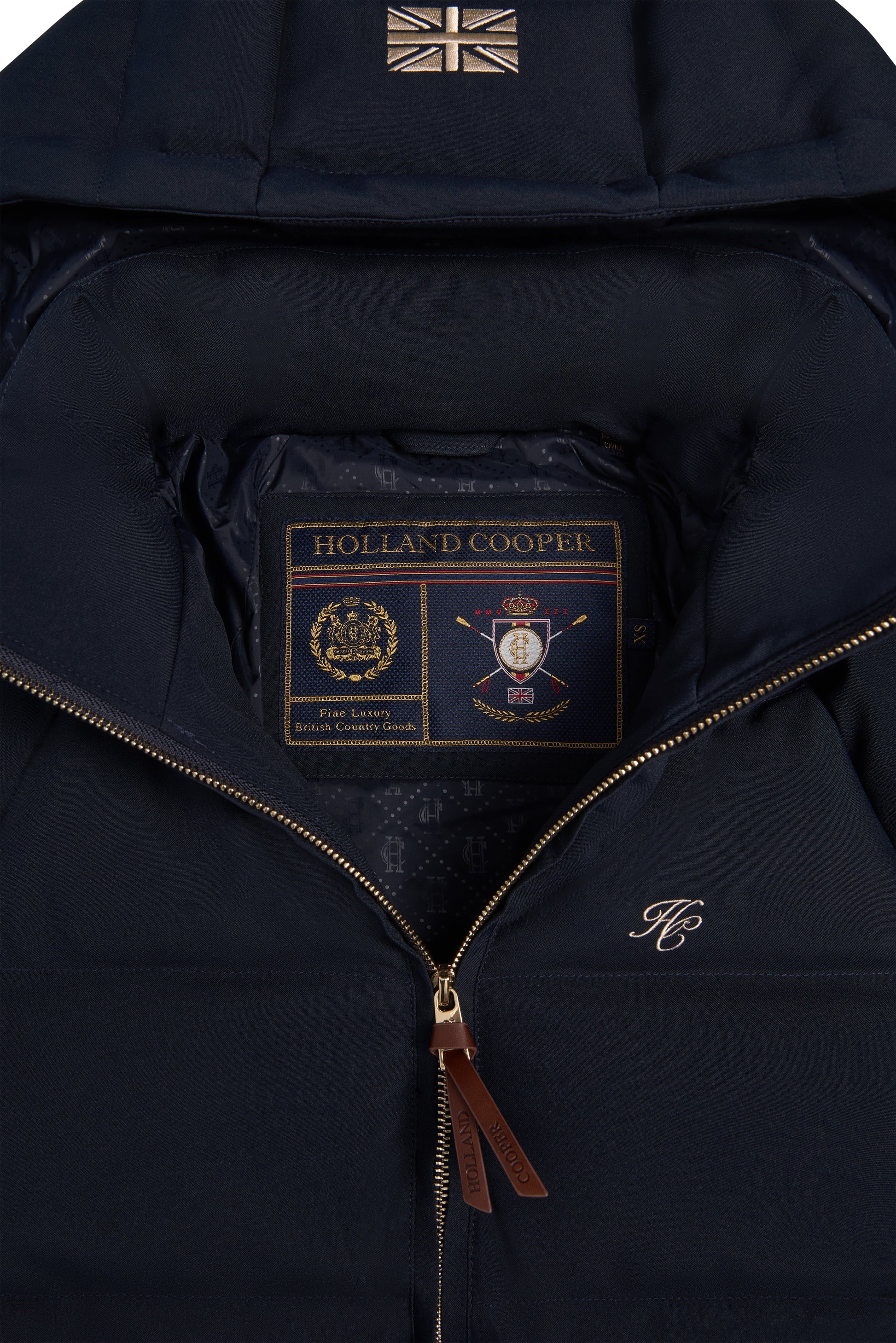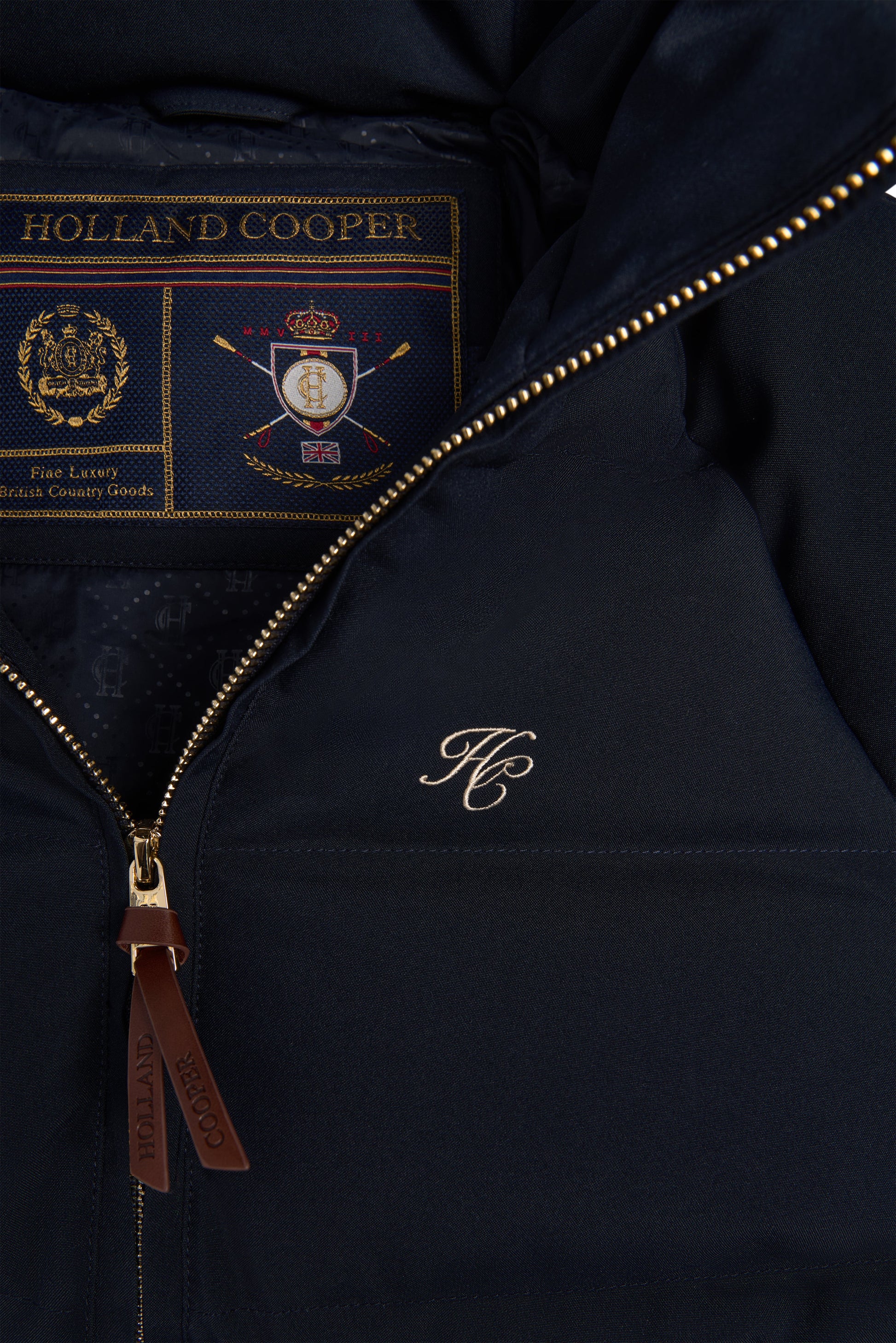 A masterpiece of refined elegance and exceptional performance. This luxurious jacket is meticulously crafted to offer both style and functionality. Its water and wind-resistant shell ensures you stay protected from the elements, while the contrast fabric panelling add a touch of Holland Cooper refinement, making it a standout piece for any occasion. With a practical detachable hood and leather zip pulls, this jacket is as versatile as it is stylish. Signature embroidered detailing on the sleeves and chest completes this distinguished outerwear.