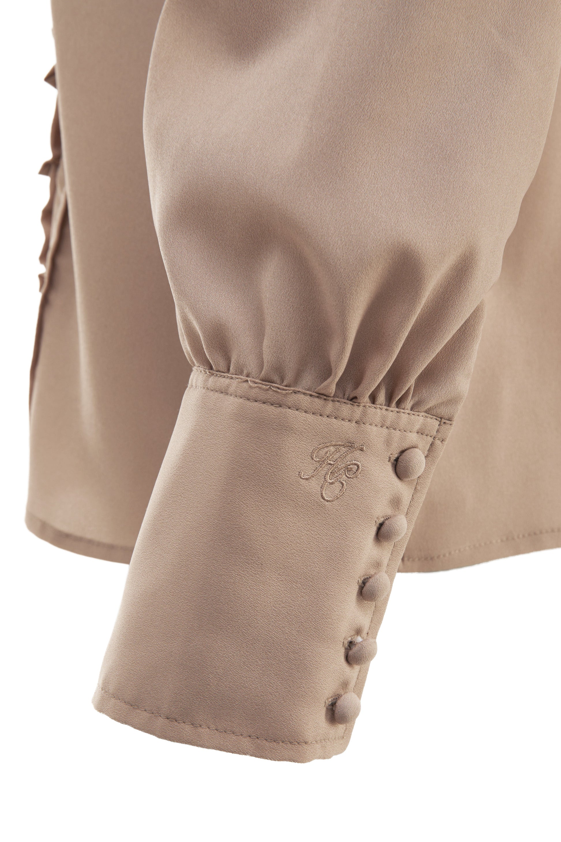Designed with a bold silhouette, this shirt features a classic collar and is adorned with delicate ruffles and front placket details. Large gathers create added volume for an exaggerated puff sleeve finished with elongated cuff to accentuate the feature. This shirt is both elegant and feminine, with its soft ruffles and will elevate any autumnal look.