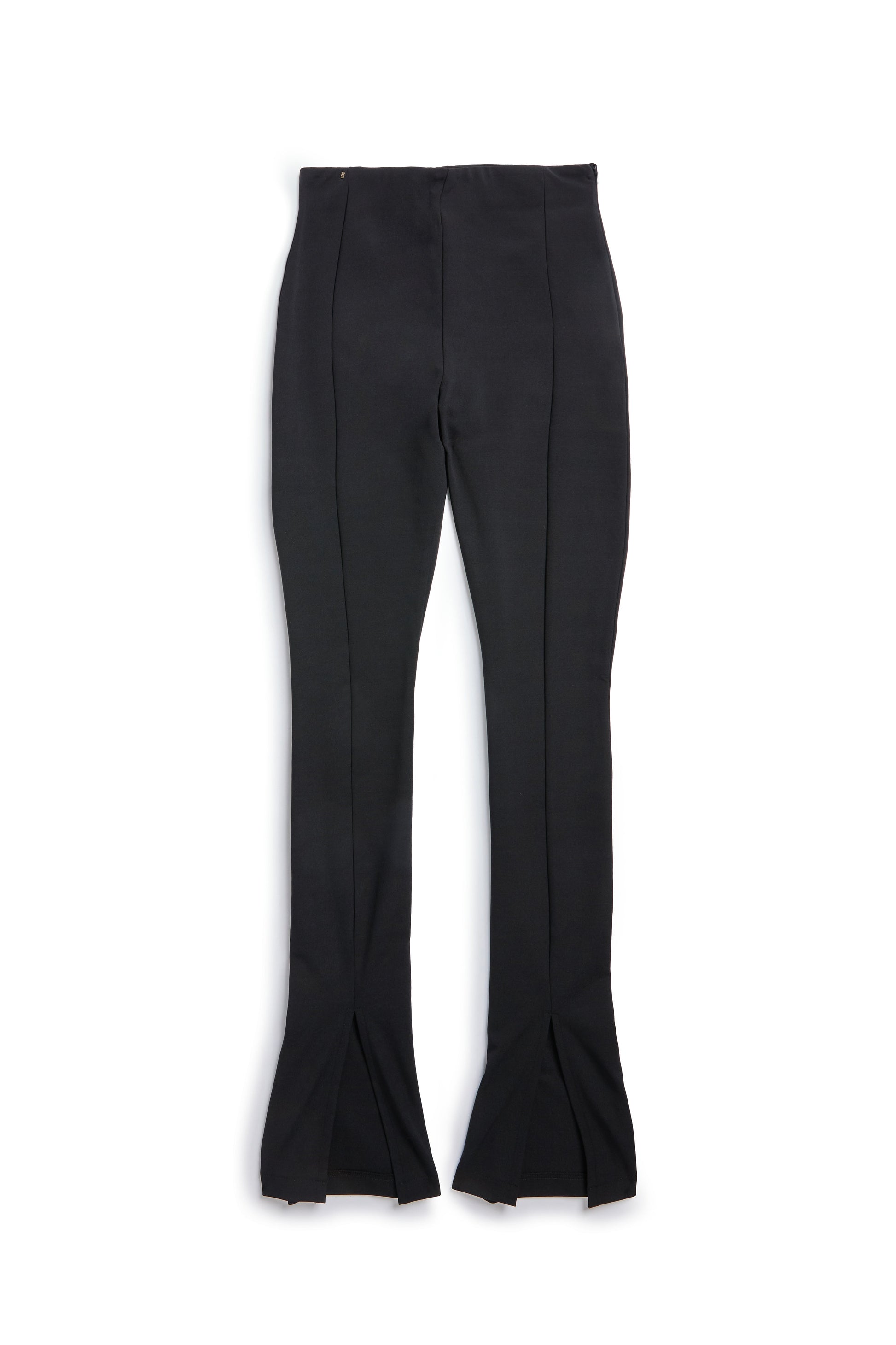 Designed to sculpt and elongate, the Contour Flared Trouser is a statement piece with a sleek, modern edge. Tailored to a slim fit through the thigh, the design flares out elegantly from the knee, creating a flattering and elongating silhouette. A central split at the ankle adds movement and a contemporary touch, while sharp pin tuck detailing enhances the clean lines of the leg.