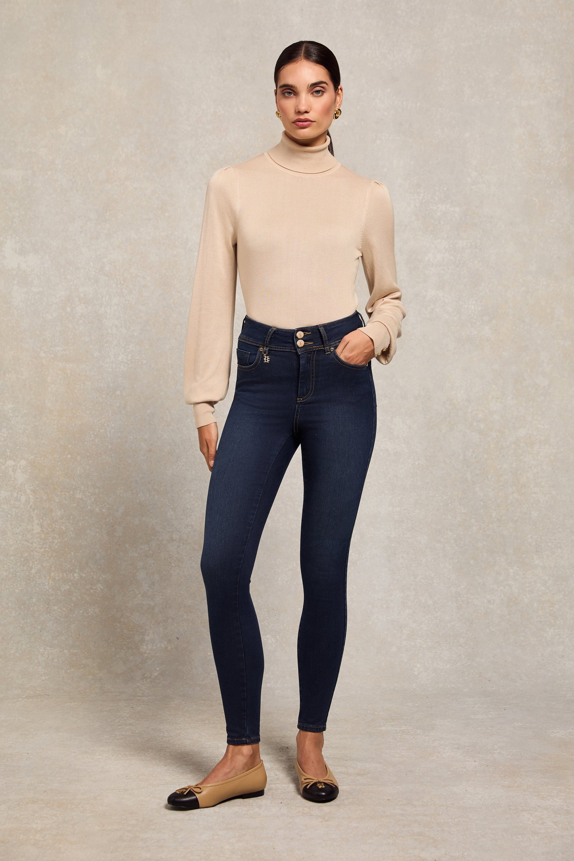 Redefining a wardrobe essential, the Contour Skinny Jean delivers the same super-skinny, body-sculpting fit made iconic by our Jodhpur Jeans. Reimagined with traditional five-pocket denim styling, these jeans combine contemporary design with timeless appeal. Perfectly proportioned back pockets enhance the silhouette, while the branded back jacron and signature gold hardware add a touch of luxury.