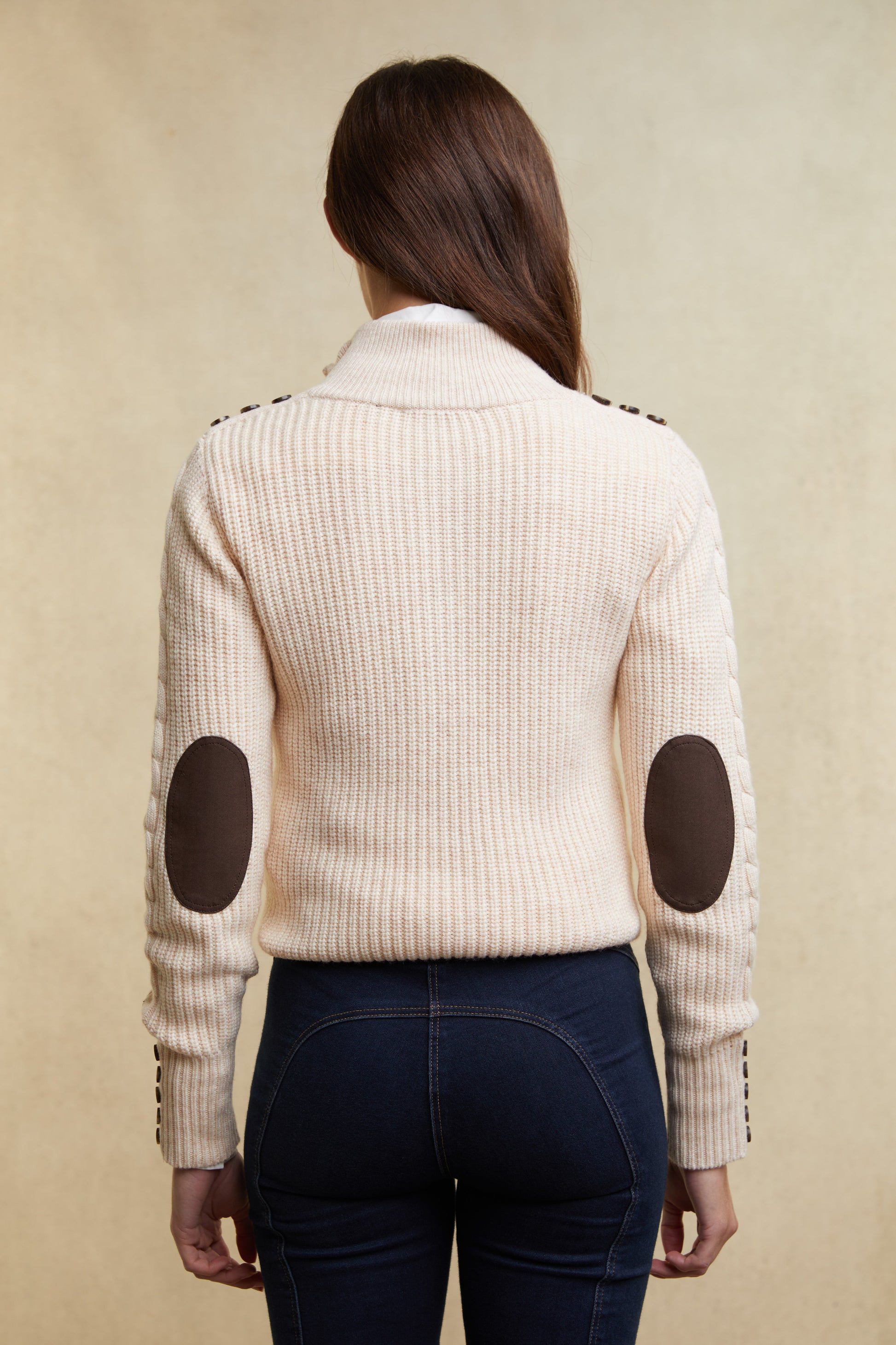 - Dark brown elbow patches