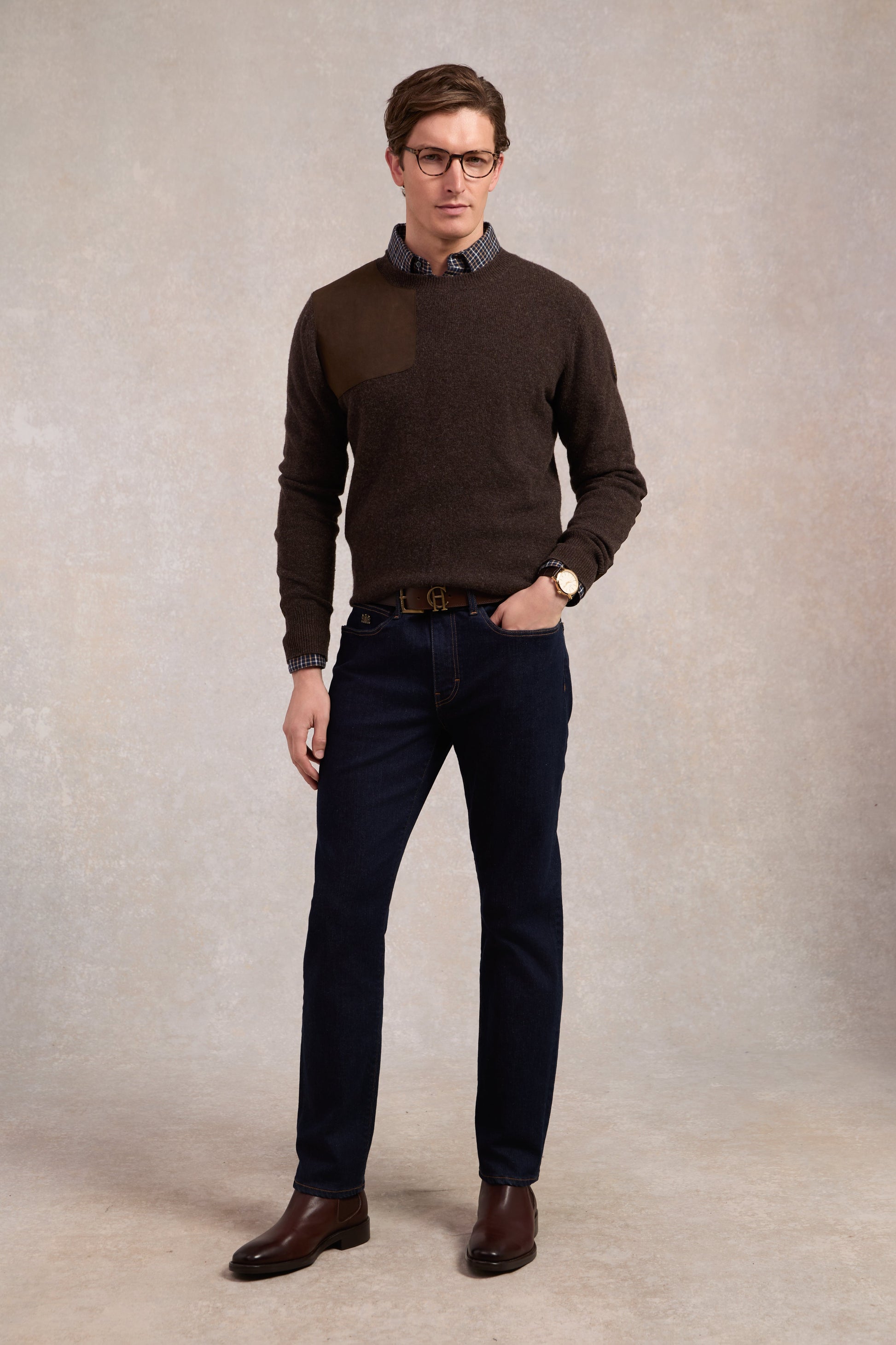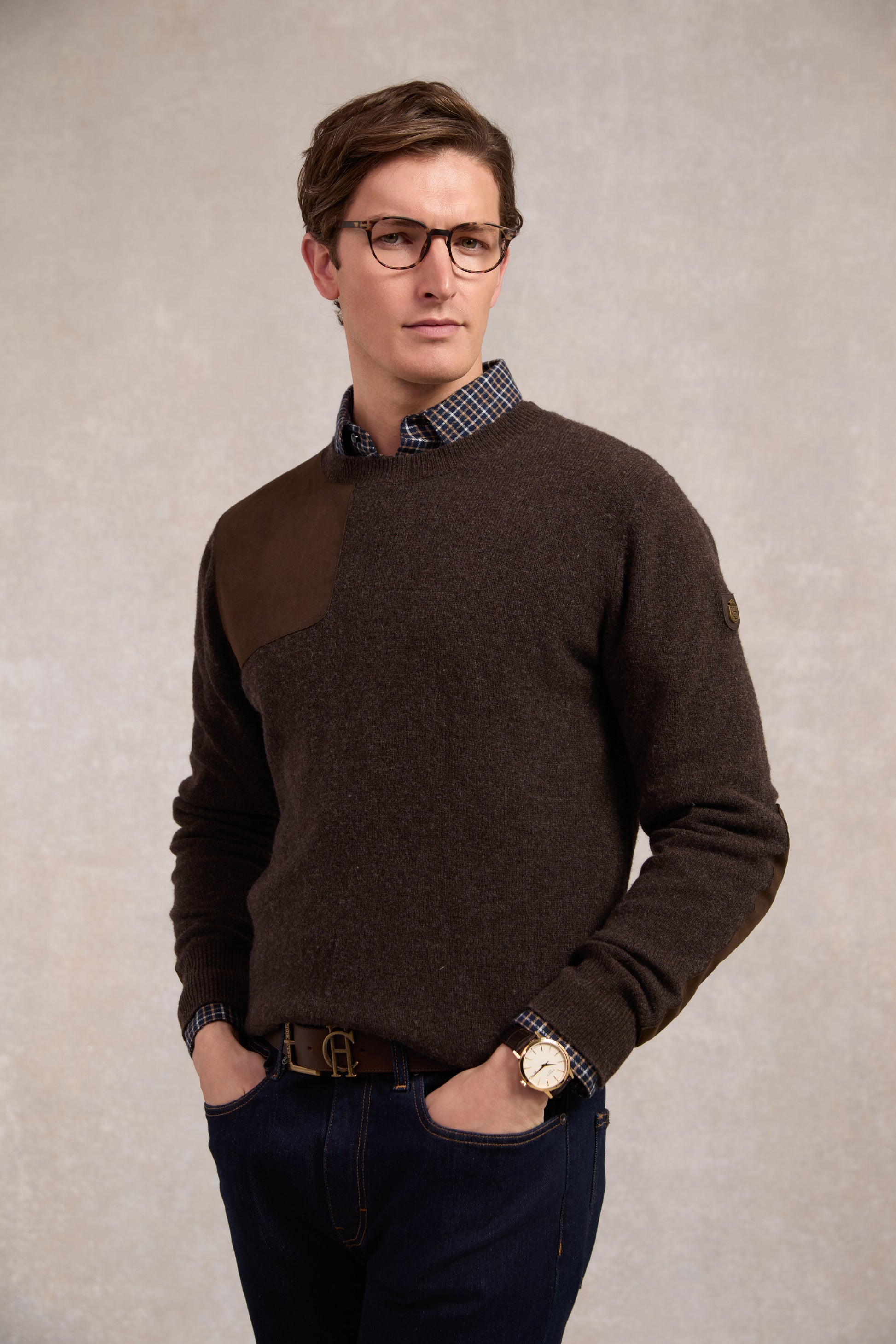 Inspired by classic British heritage, our first men's Country Knitted Jumper has been designed to be both durable and stylish. Crafted from Merino Wool, this unmistakably British style has been created with a crew neckline with subtle ribbed details to the neck and cuffs. With a reinforced chest patch, this classic fit ensures a laid-back, yet elevated look.