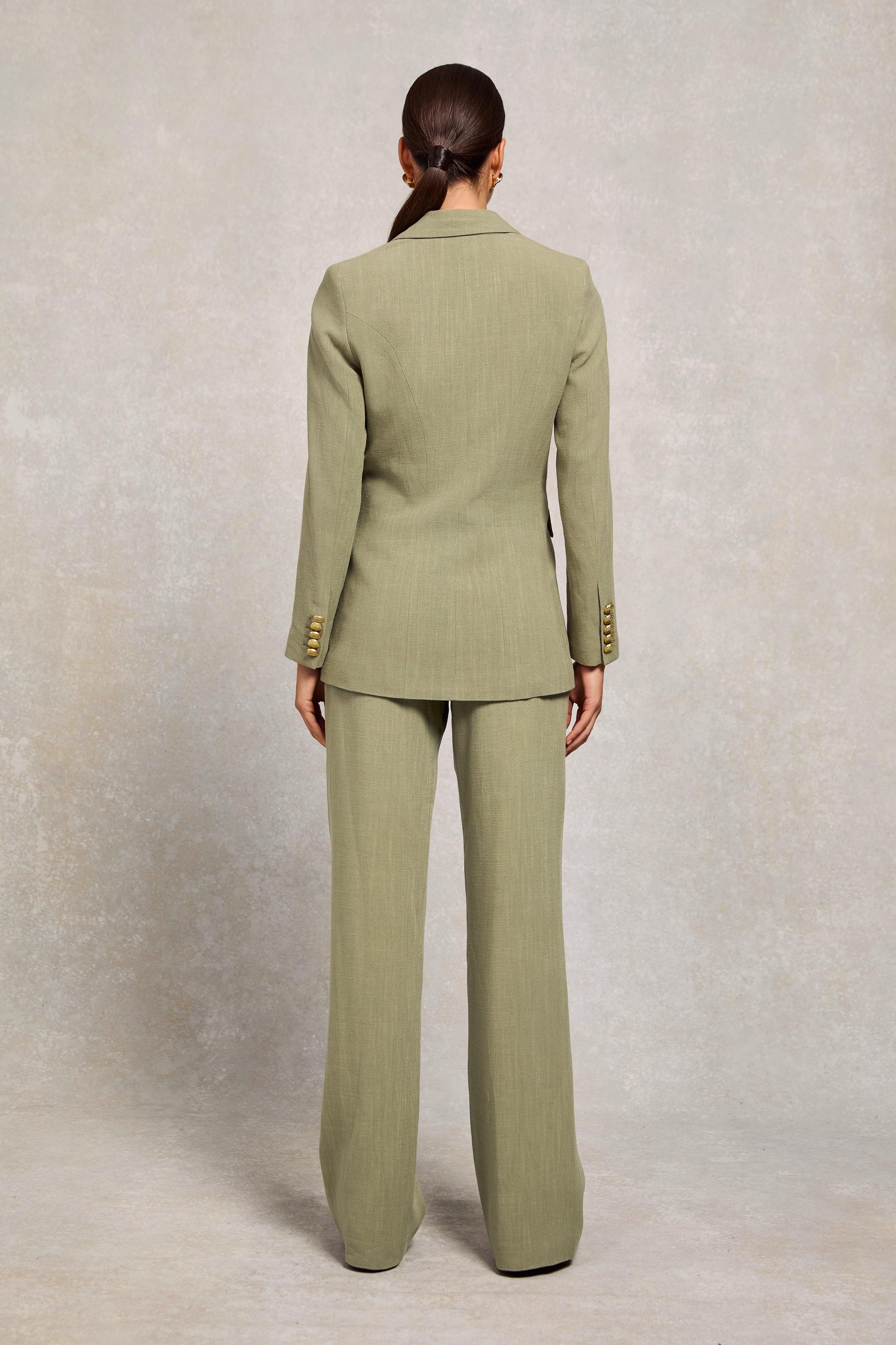 Designed to create a sharp tailored silhouette worn open or closed, the Double Breasted Linen Blazer has been handmade in the UK. Fully lined with a luxury stretch lining for extra comfort and adorned with HC signature gold hardware to the front and cuffs, this piece is a must have for your spring wardrobe.