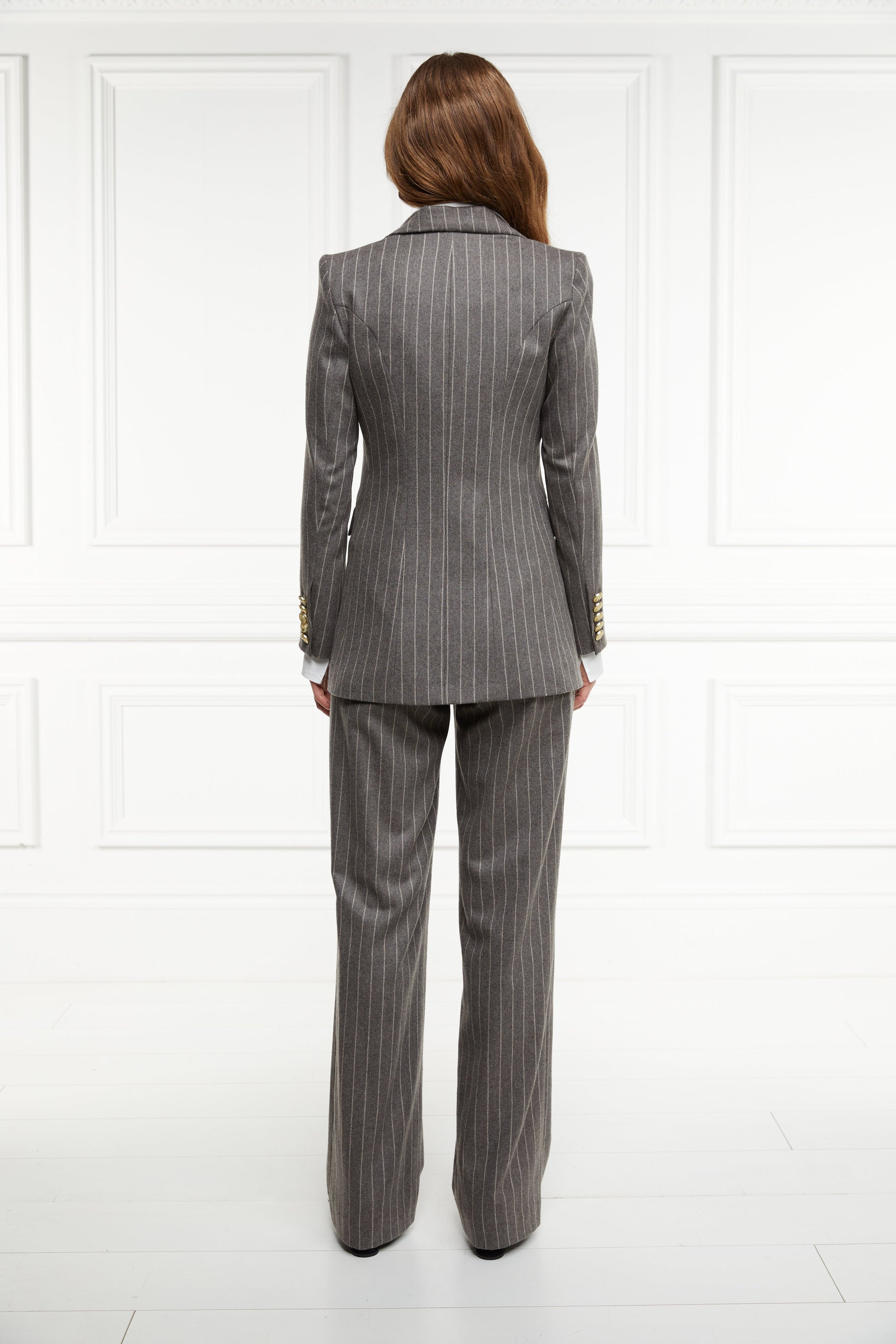 Double Breasted Blazer (Soft Grey Pinstripe)