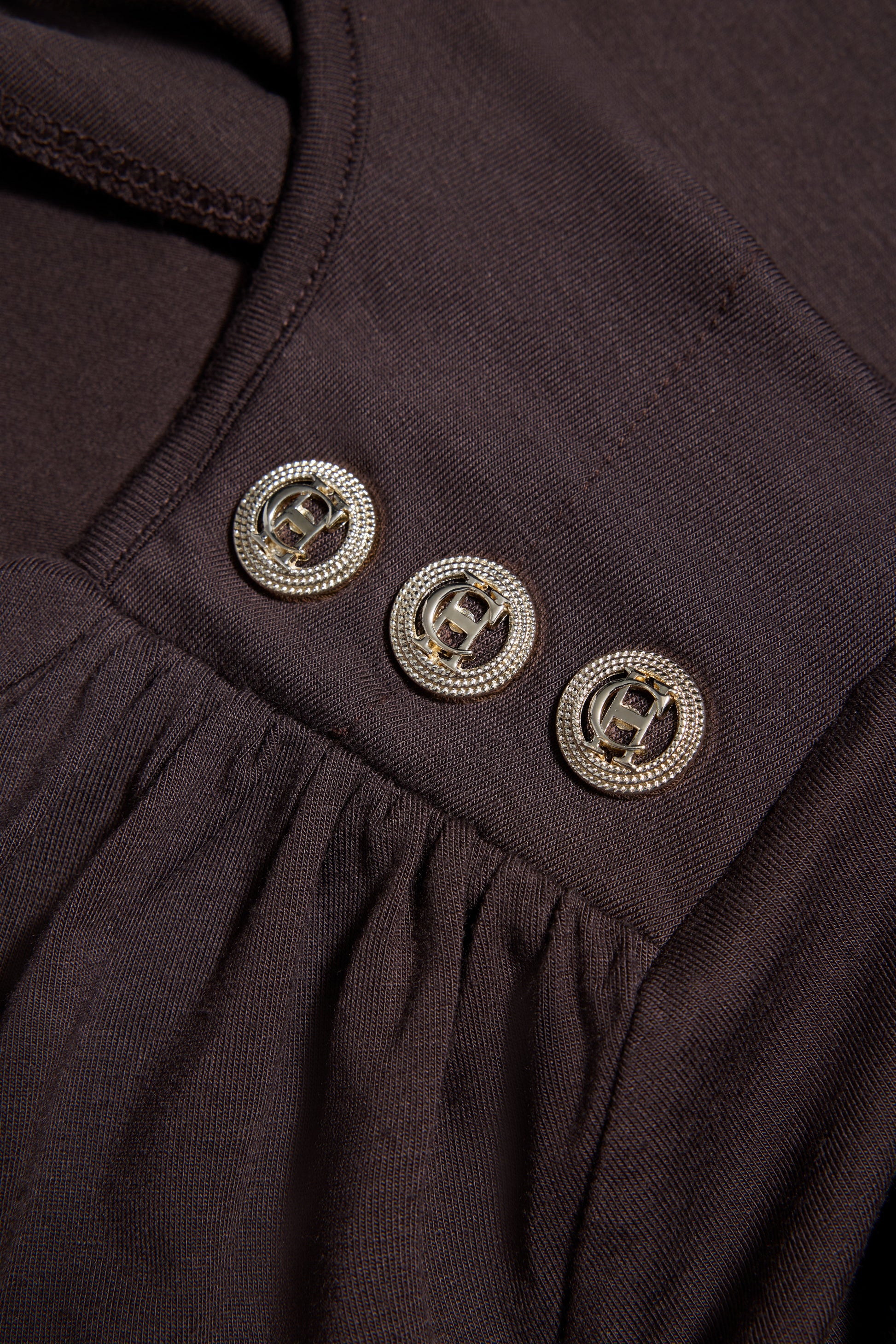 Crafted from a luxuriously soft fabric, this top has been designed for a relaxed fit, ensuring both comfort and style. Showcasing effortless elegance with a delicate cowl neckline, long sleeves and detachable shoulder pads. Detailed with our signature branding on the shoulders.