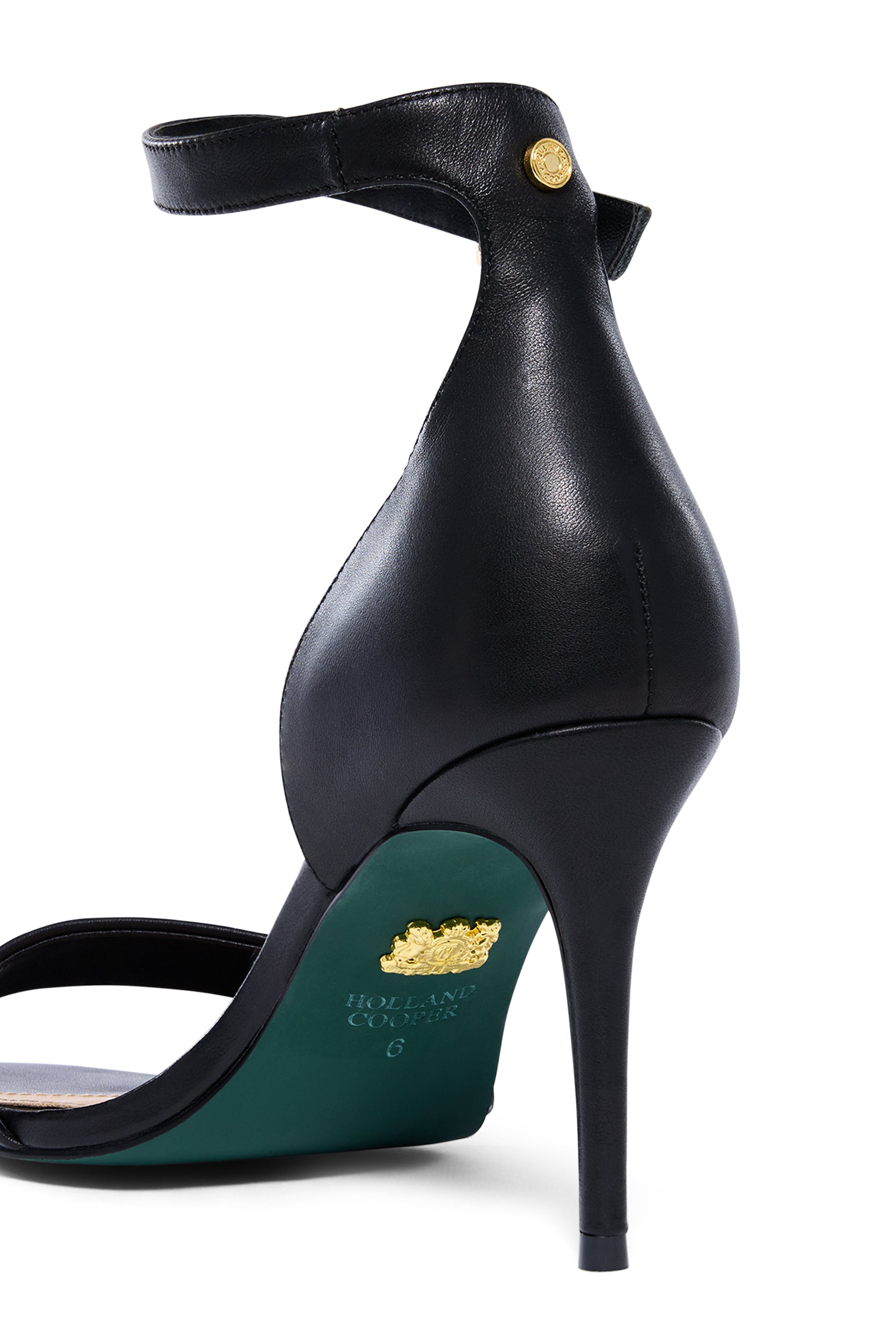 Elegantly crafted with a luxurious leather-covered stiletto heel, the Ellenborough features a gold-branded buckle detail and a subtle HC logo on the front strap. Finished with a striking racing green lacquer outsole and a gold crest, this shoe perfectly balances timeless sophistication with a distinctive flair.
