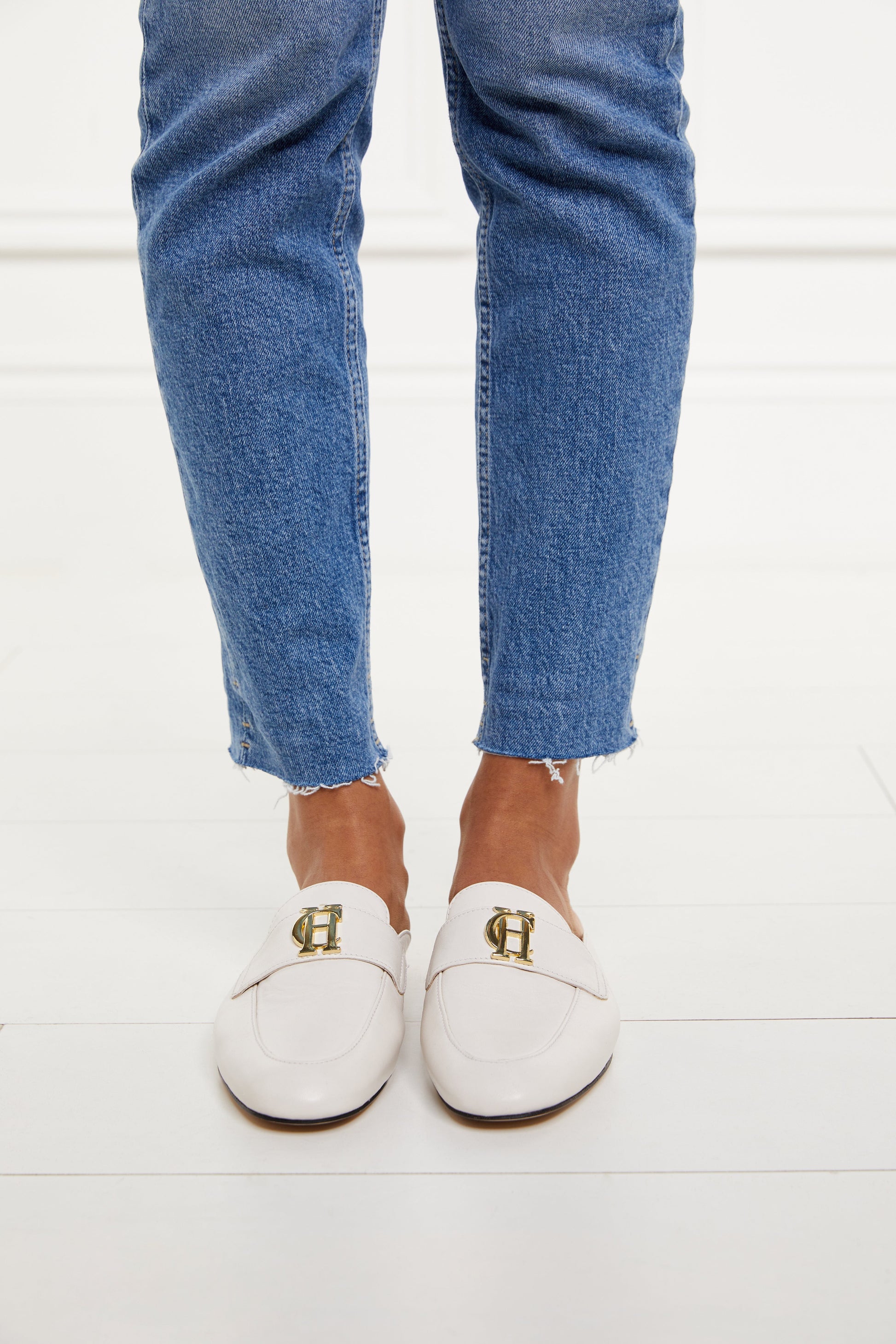 Designed with a modern and effortless aesthetic & crafted from a soft & smooth leather. With a backless shape and almond toe, these loafers have been designed to be an elegant & wearable addition to your wardrobe. The slight heel has been added to ensure they pair well with both jeans and tailoring. Beautifully detailed with a gold HC pin.