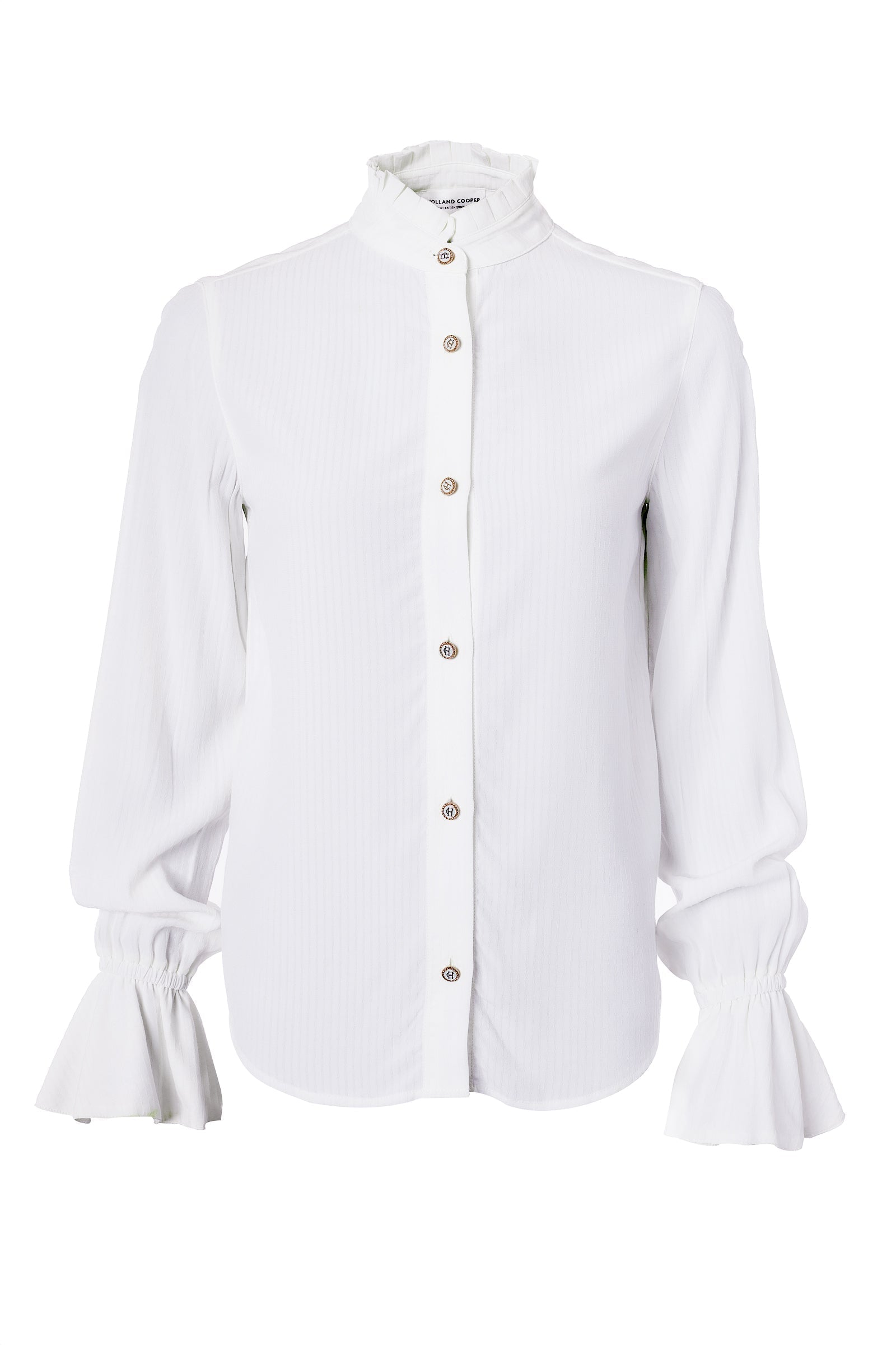 A refined evolution of our beloved Lillibet Tee, this piece has been designed with delicate ruffles along the collar. With a relaxed fit, the voluminous long sleeves are finished with elasticated cuffs for a perfect blend of style and comfort. Crafted from a tonal jacquard stripe fabric, this shirt adds a versatile and timeless element to your collection.