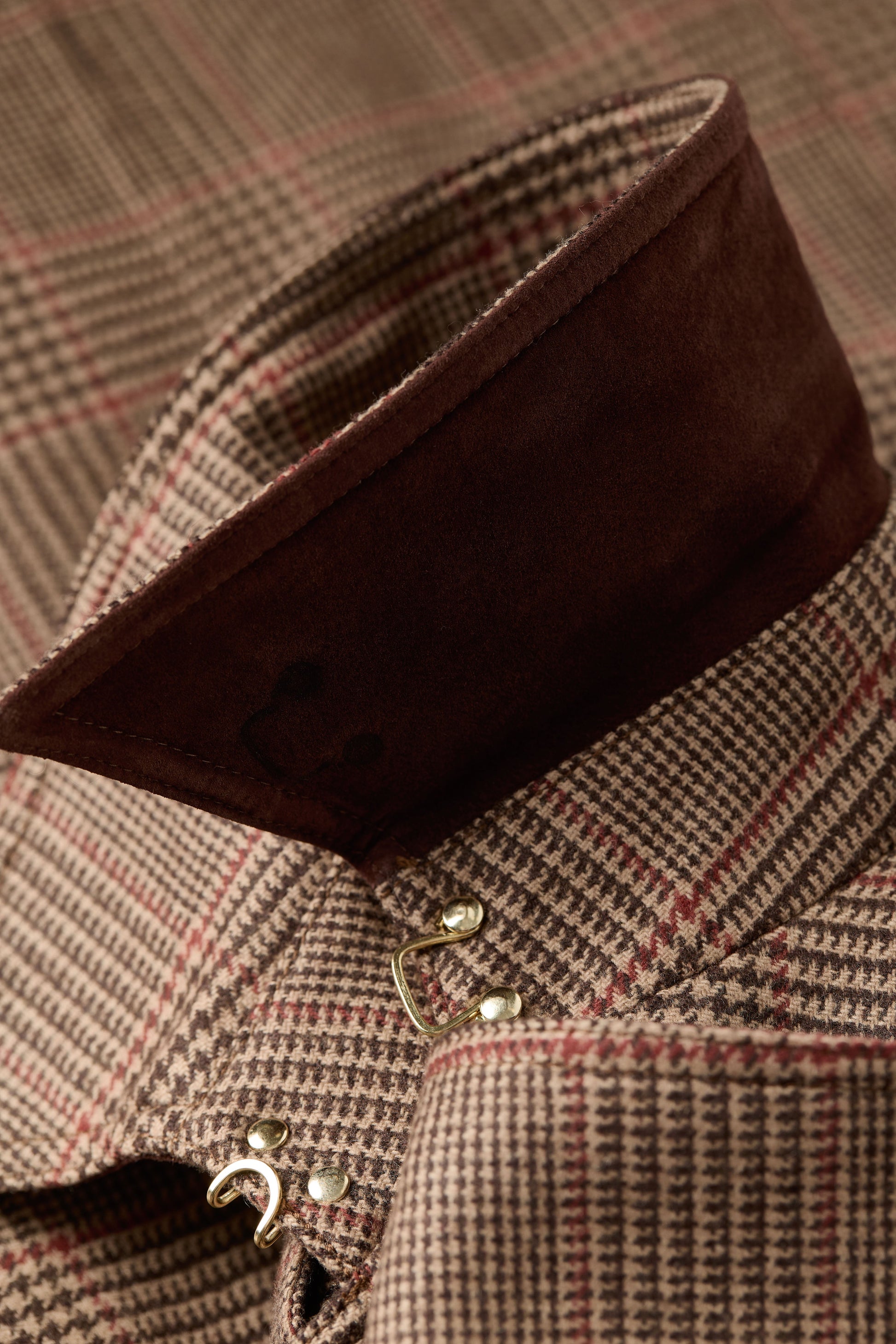 - Hook and bar closure at centre front neck