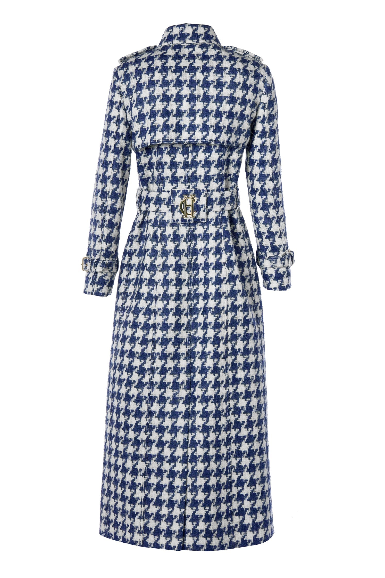 Full Length Marlborough Trench Coat (Large Scale Navy Houndstooth)
