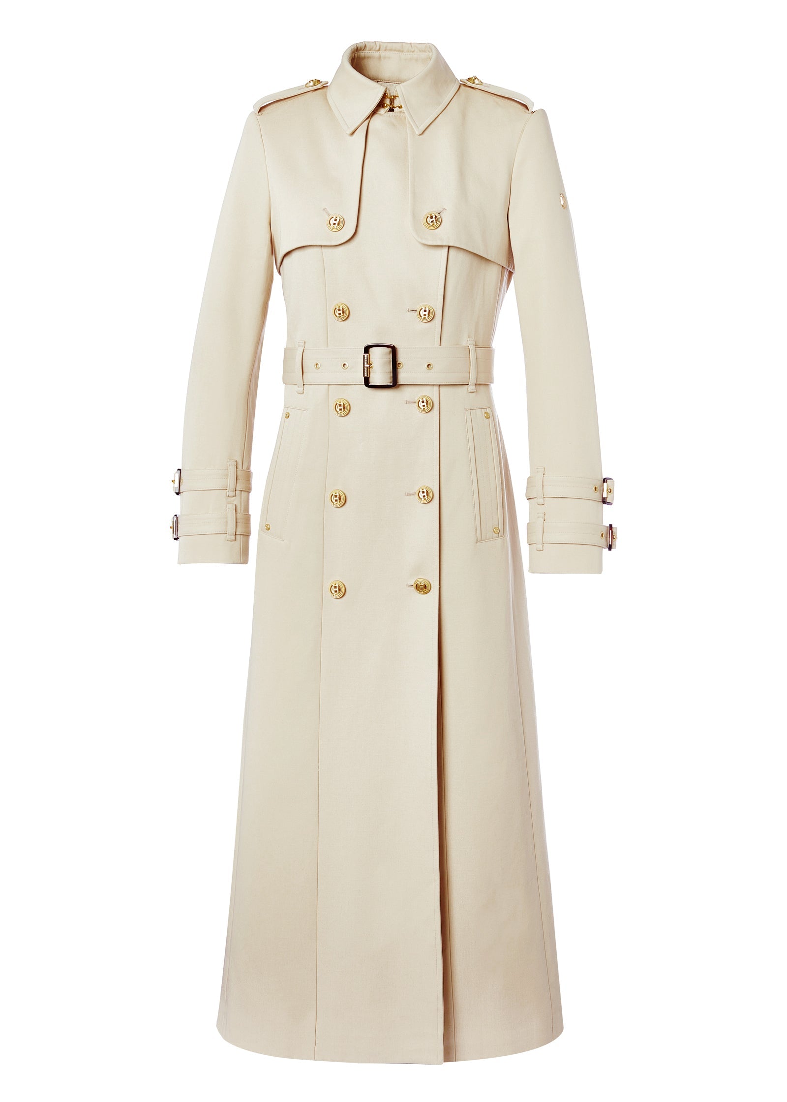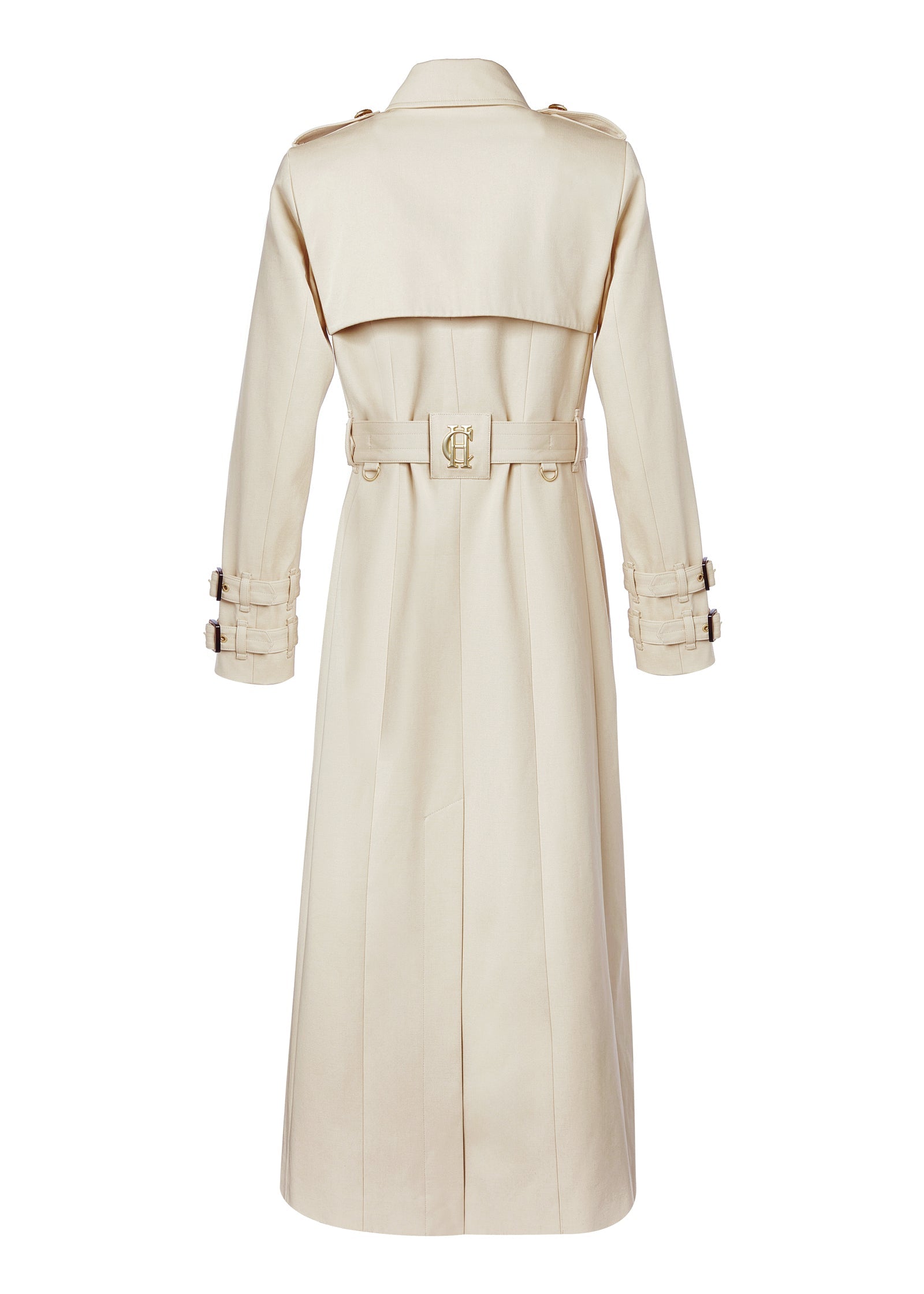 The detachable belt features traditional D-rings and multi-row topstitch detailing allowing you to customise your look. Adorned with matte gold hardware, extra thick topstitching and a fully embroidered back label, every detail of this trench coat reflects our commitment to quality and sophistication.