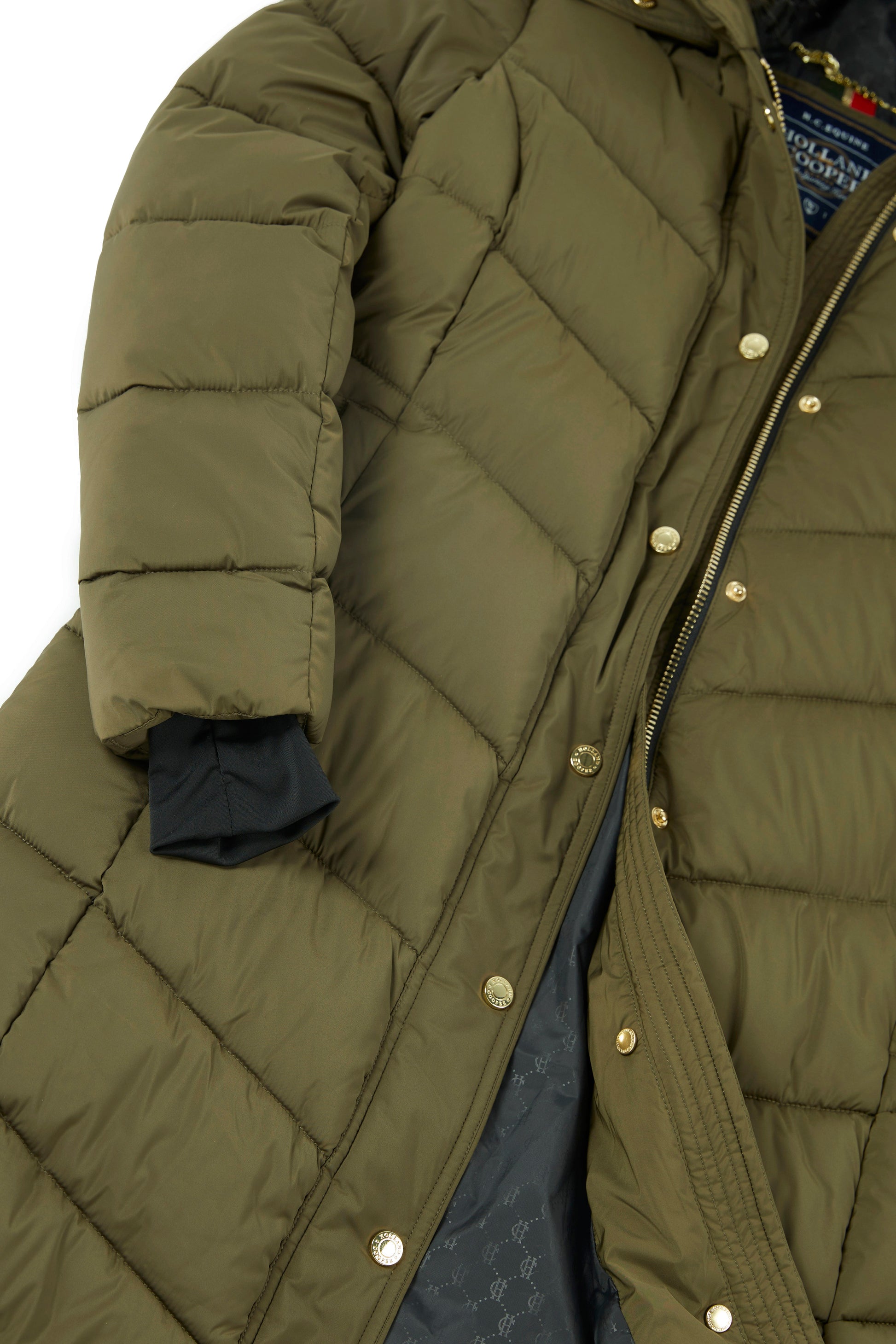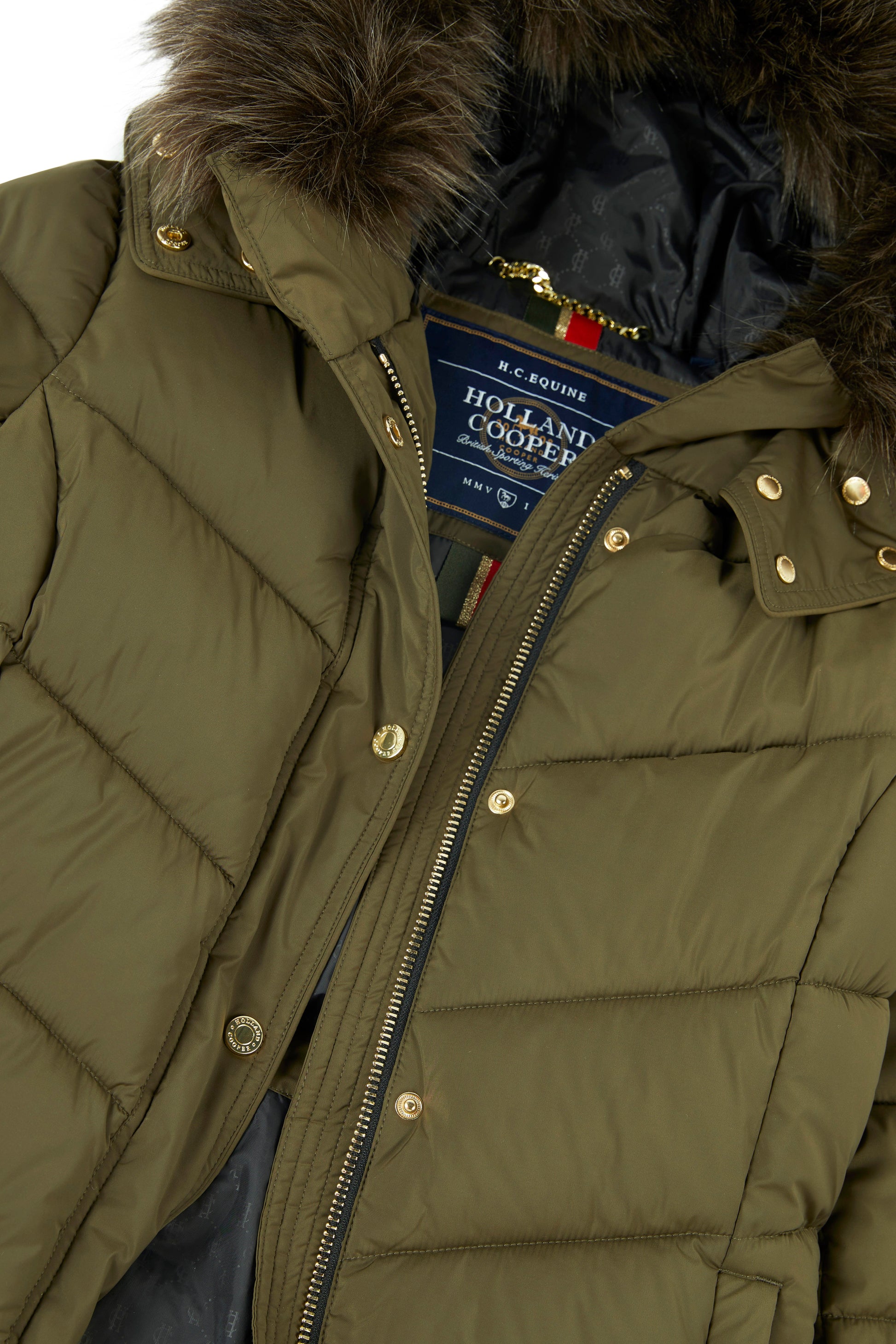 This full length padded coat is perfect for keeping you snug and warm on those colder days. With a luxury faux fur trimmed hood and iconic gold hardware, this coat is ideal for elevating every winter outfit. Detailed with storm cuffs to lock in warmth, this coat is both stylish and practical.