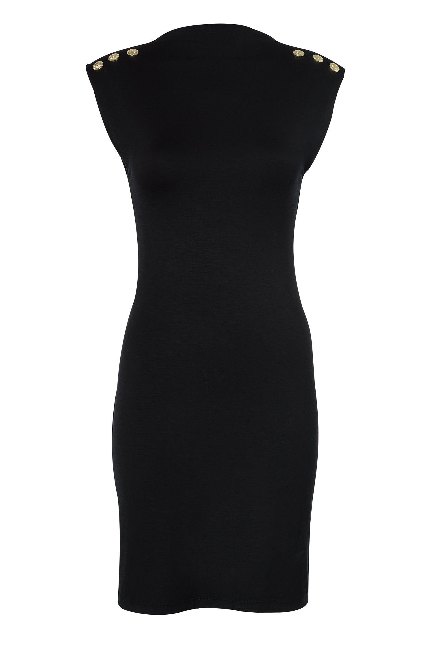 The slim fit mini dress is made from luxuriously soft fabric with lightly padded shoulders, giving it a beautiful feel and elegant silhouette. The fabric is double layered to not only contour the body, but to ensure the fabric isn't transparent. Detailed with our HC signature gold hardware on the shoulders.