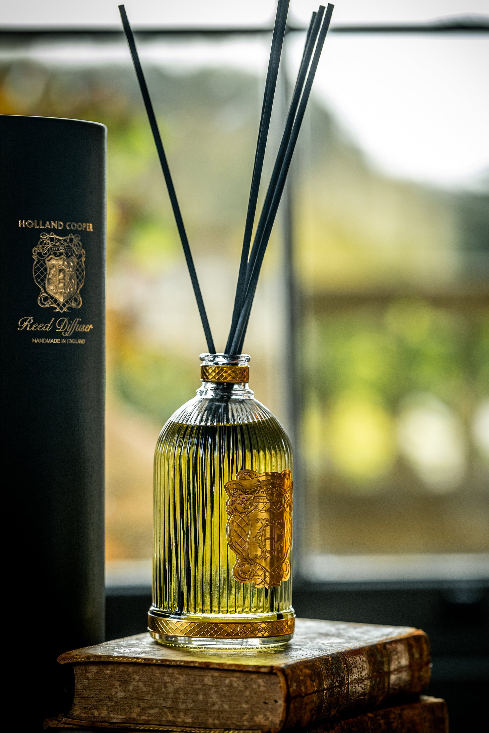 Create an inviting home ambience with our iconic blend of essential oils from our signature scent collection. With a delicate harmony of amber, leather, rich spices & oud, this scent will elegantly fill a room for up to 5 months transforming your home into a haven of comfort and style.  To use, carefully immerse the provided reeds into the fragrance bottle. Allow the reeds to absorb the alluring scent at their own pace. For the ultimate embodiment of the Holland Cooper lifestyle within your home, combine our fragrance sticks with our matching candle. This combination will not only intensify the sensory experience but also add a touch of elegance to your decor.