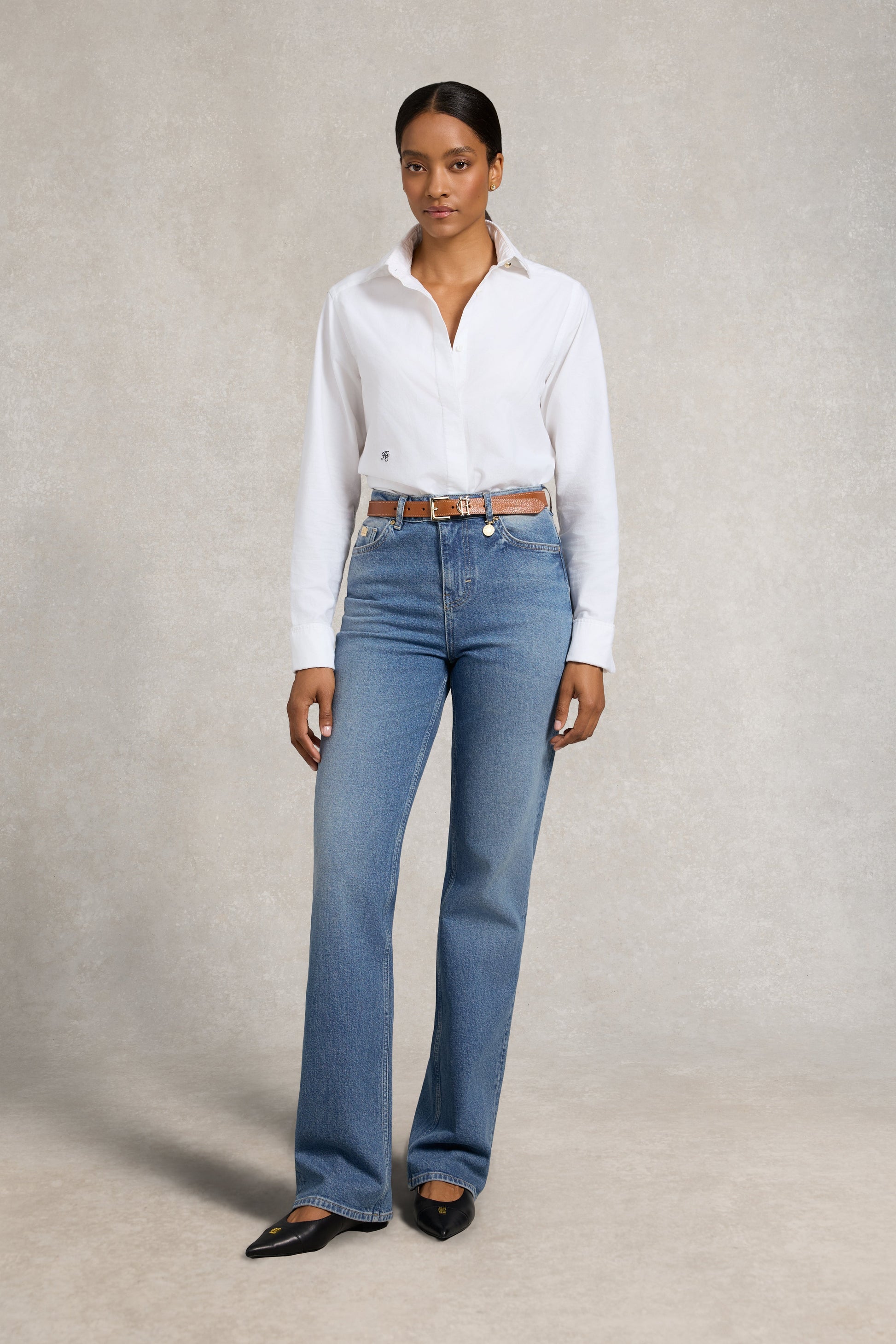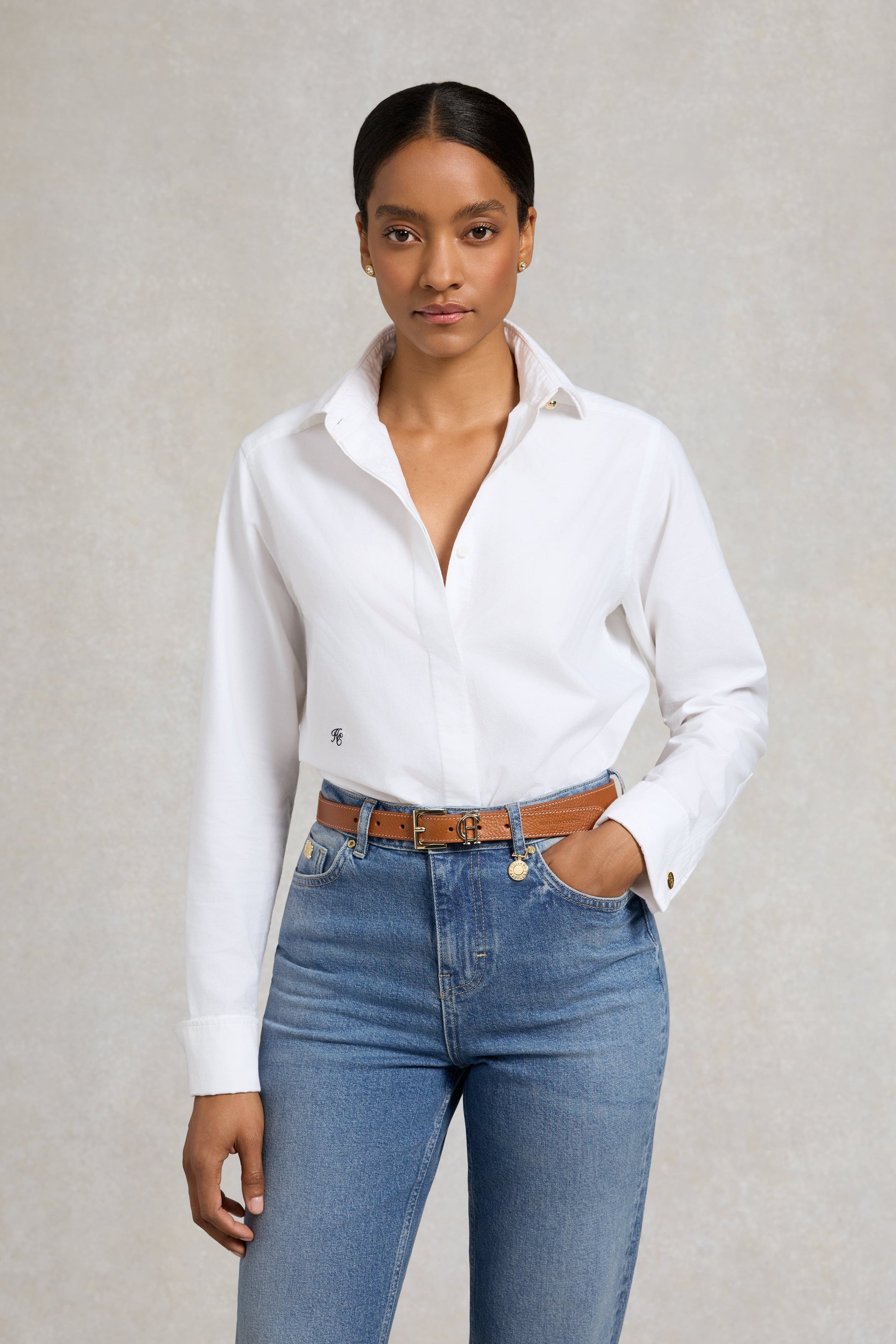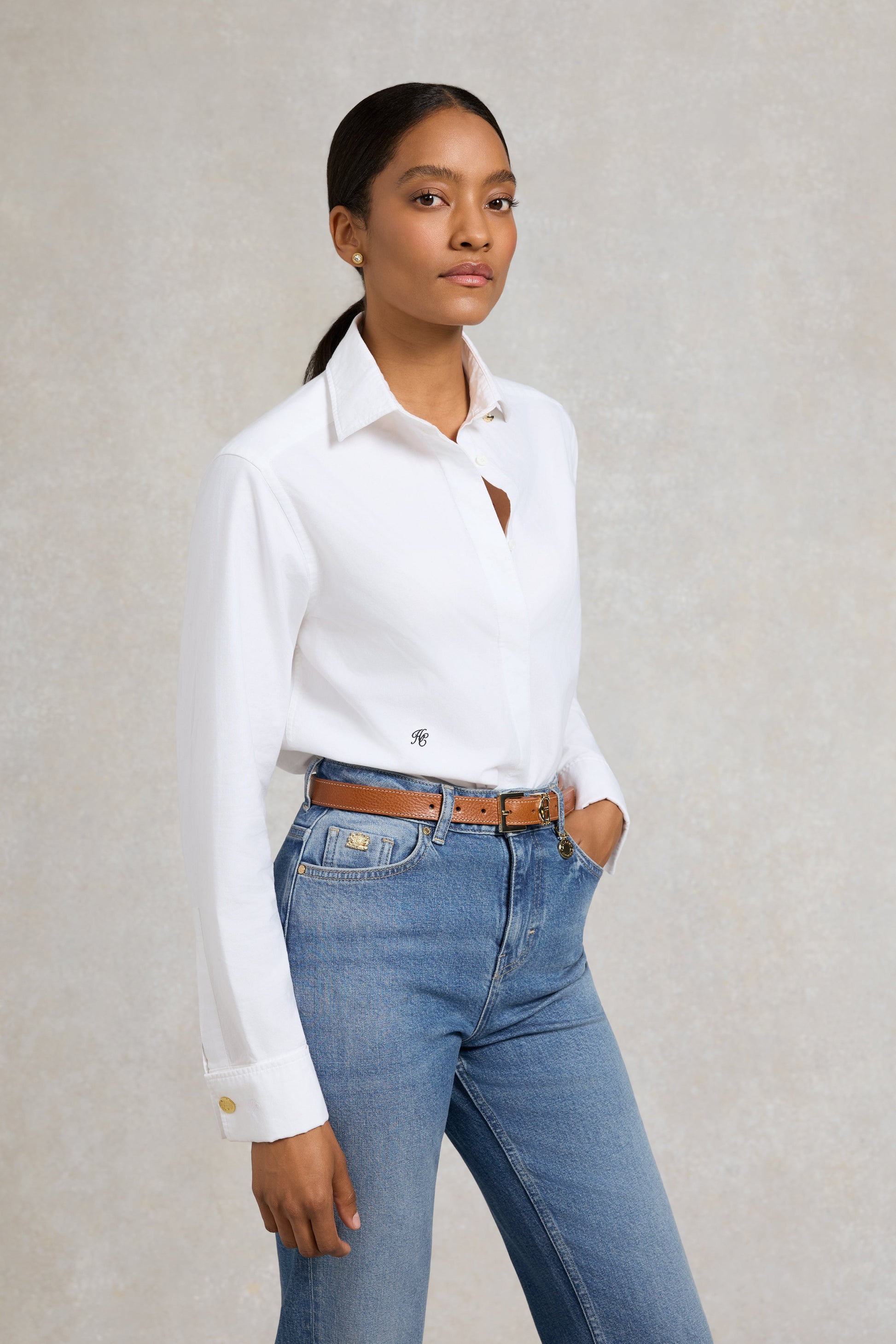 Delicately handmade in the UK, this piece has been designed with a slim width from a soft grain leather. With a branded gold HC buckle and HC embossing to the strap, this belt is ideal for adding a luxurious touch to any outfit.