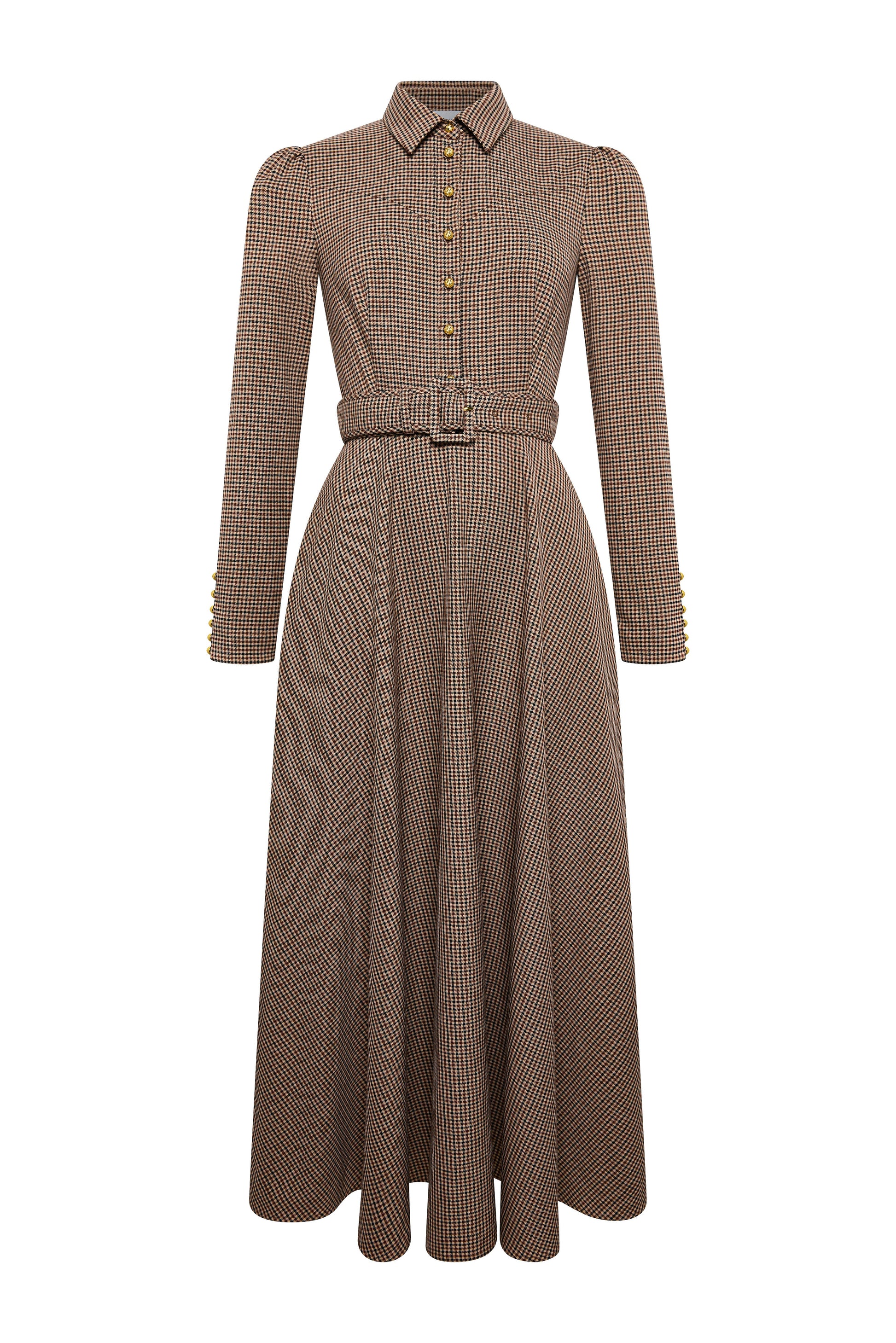 Designed for both elegance and ease, the dress includes an invisible side zip for effortless wear, a self-covered belt to cinch the waist, and softly gathered sleeve. Rouleau loop fastenings at the cuffs, finished with signature HC gold buttons, complete the look with a refined touch.