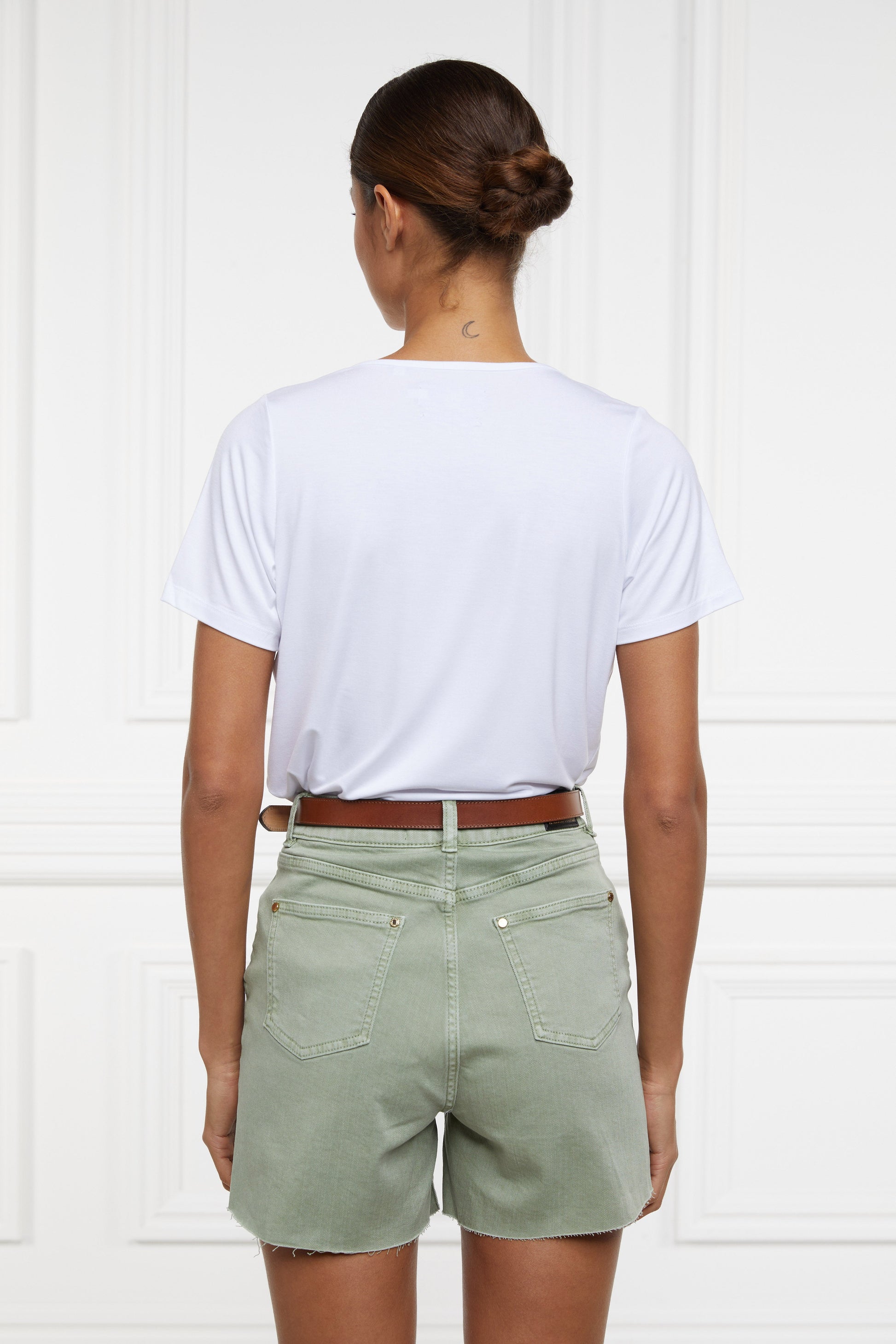 Designed with a vintage style and flattering fit, our first-ever denim shorts have been created from a comfortable stretch denim. Designed with a high rise waist and 5 pockets, the raw edge hemline makes for a classic and laid back style. Detailed with our iconic hardware.