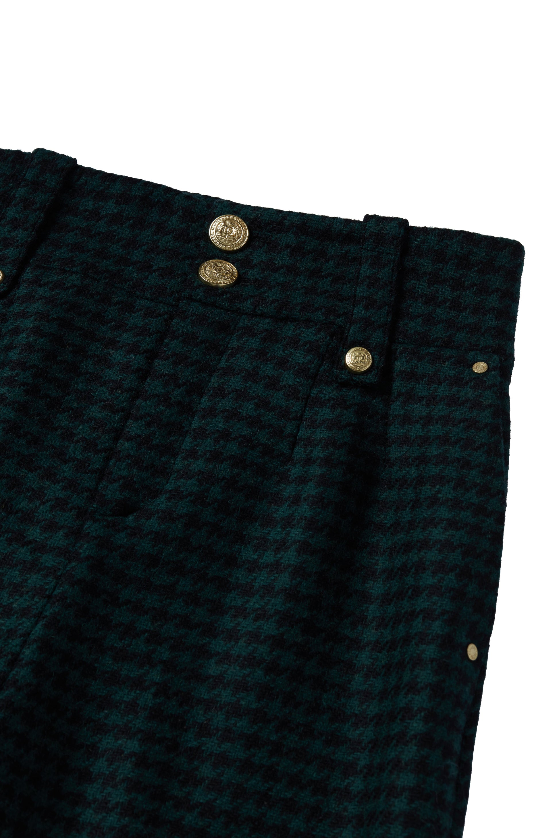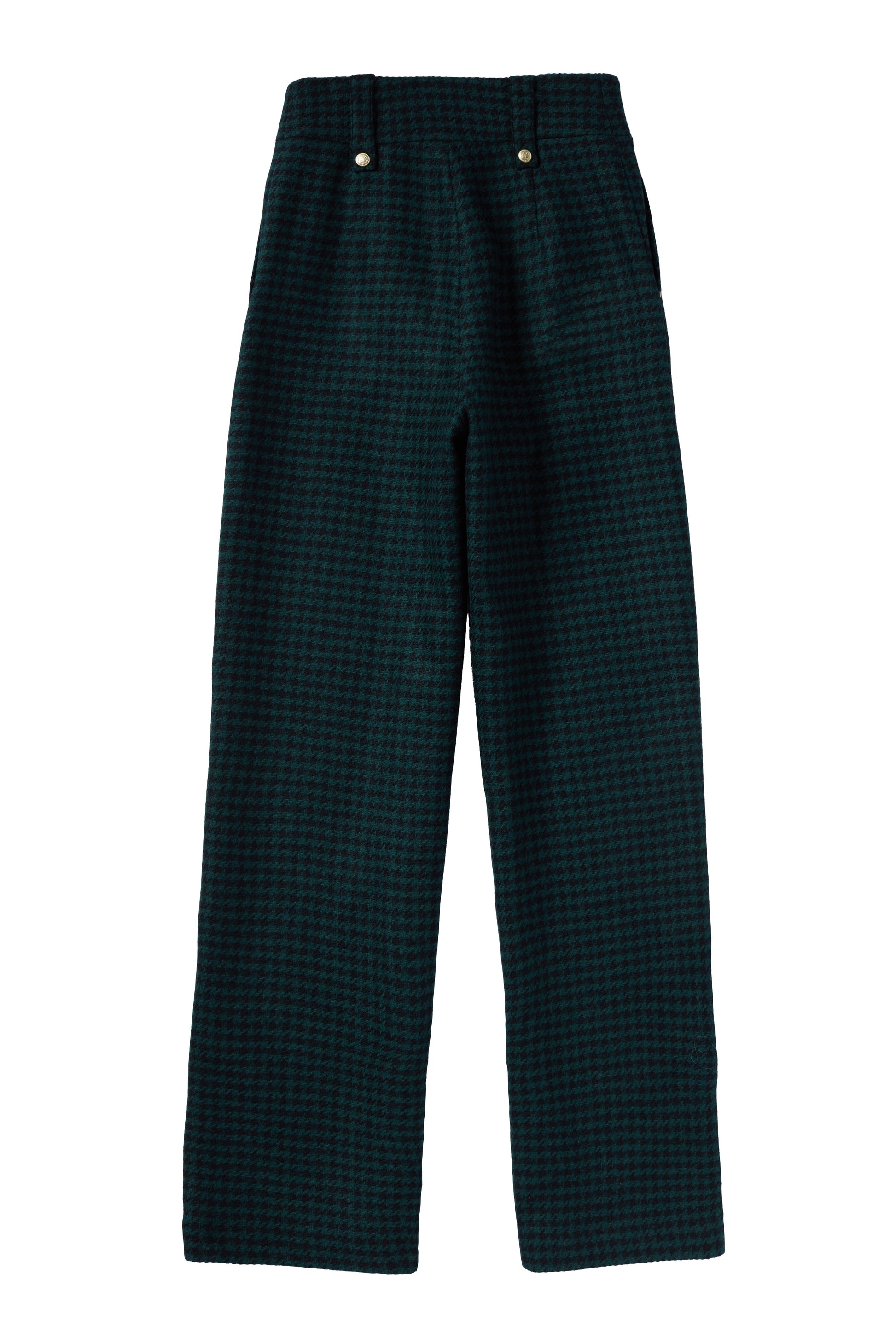 High Waisted Straight Trouser (Emerald Houndstooth)