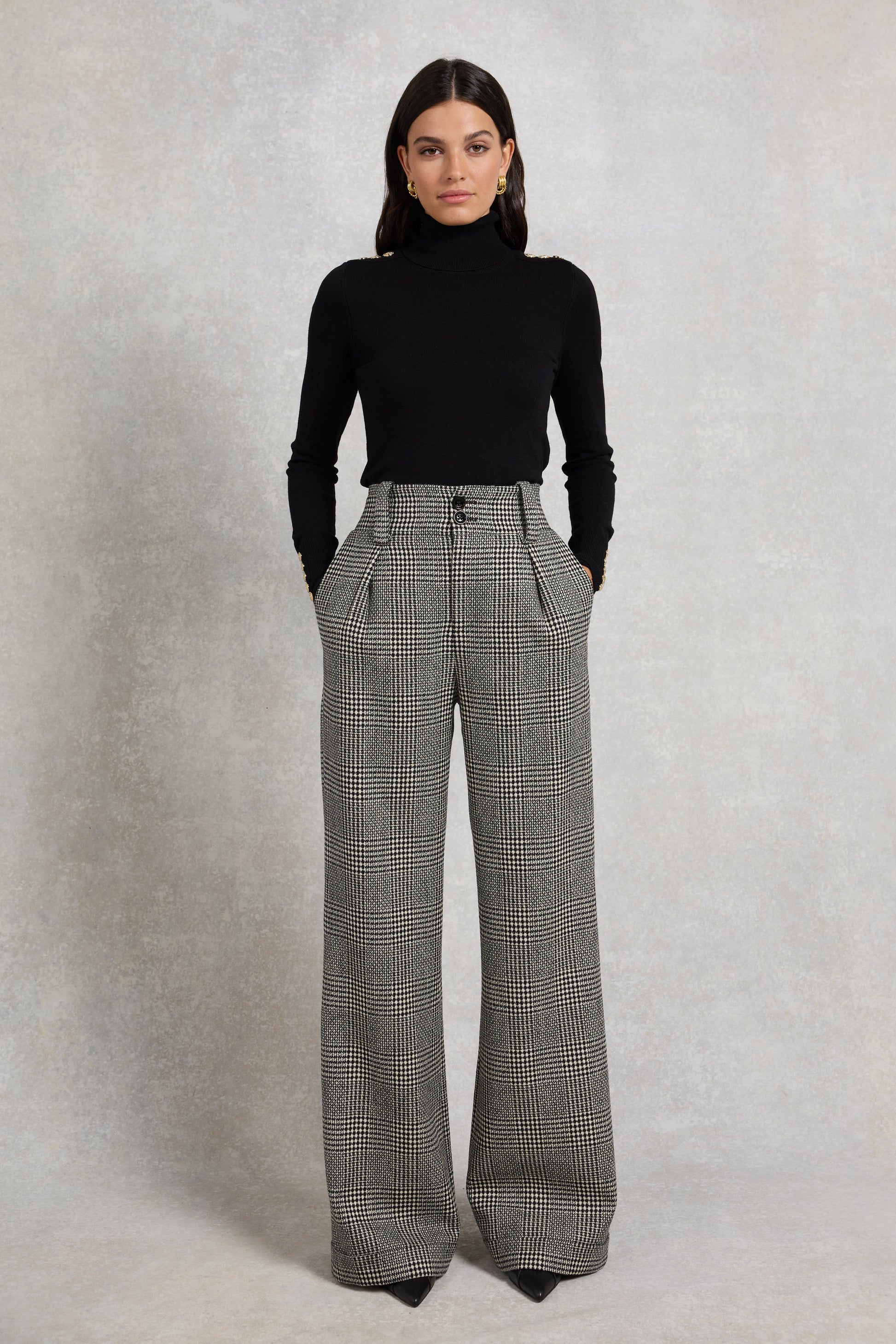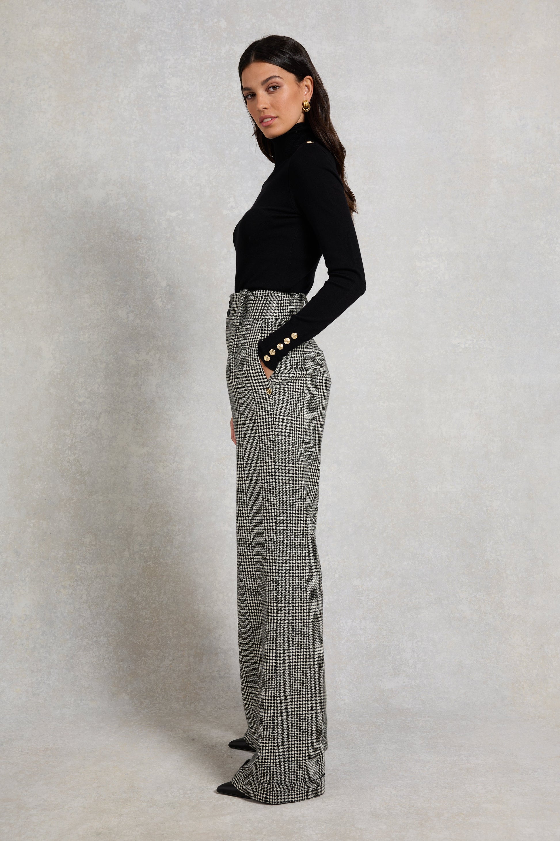 Simple and refined, these wide-leg trousers are the perfect balance of smart and casual that effortlessly take you from day to night. Made from a luxurious wool blend that's fully lined, these trousers sit high on the waist with a wide waistband to create a flattering silhouette that suits all body shapes. Featuring two large side pockets and adorned with our iconic gold hardware for an added touch of luxury. These trousers have been hand cut and made in England using wool woven in the UK.
