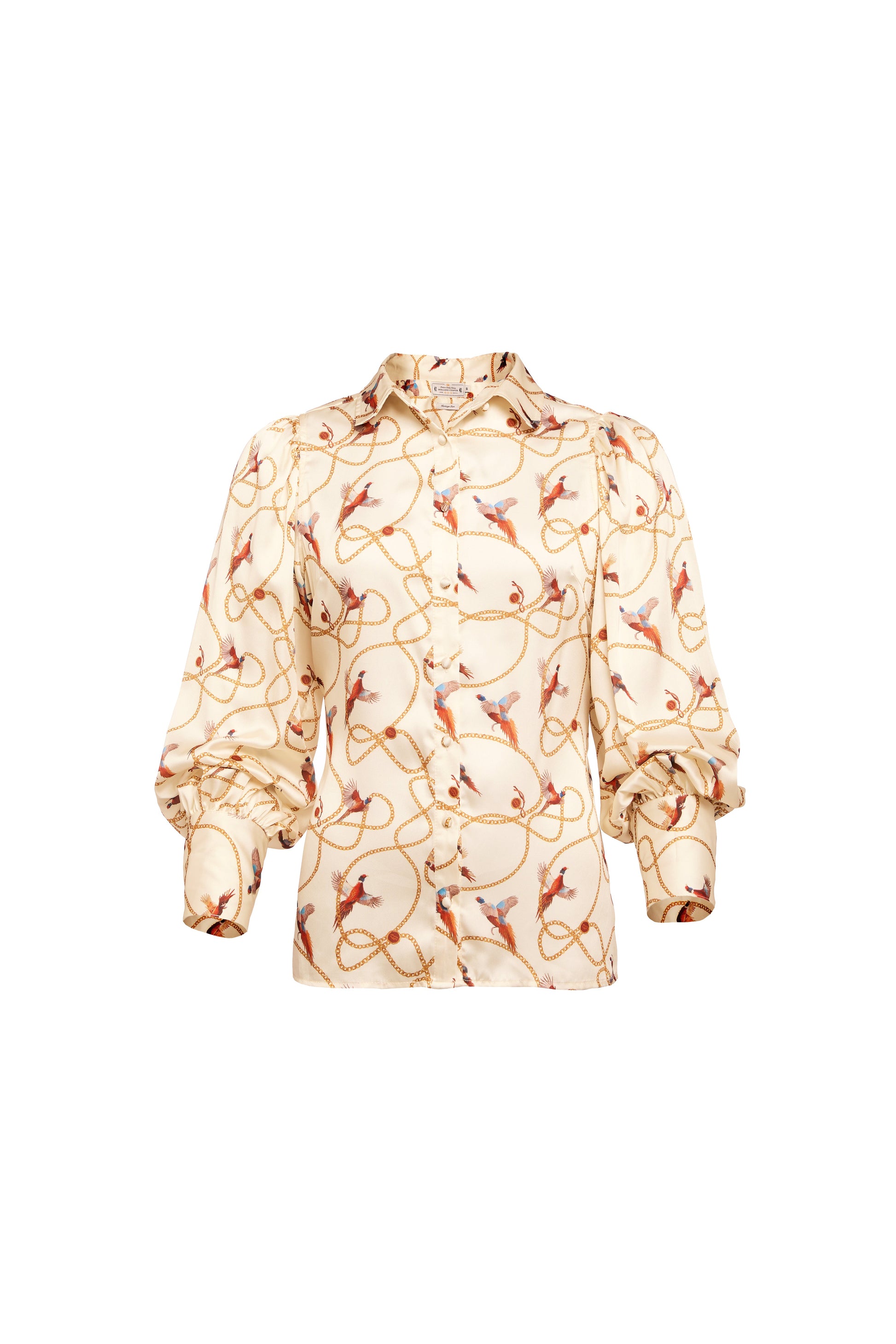 The Isla Shirt is a country twist on the classic shirt, featuring a tailored yet relaxed fit that exudes effortless sophistication. Highlighted by its statement high-volume sleeves and extra-long cuffs, this shirt is designed to stand out. The front is adorned with matching fabric-covered buttons, complemented by a signature gold crested button, embodying the distinctive elegance of Holland Cooper.