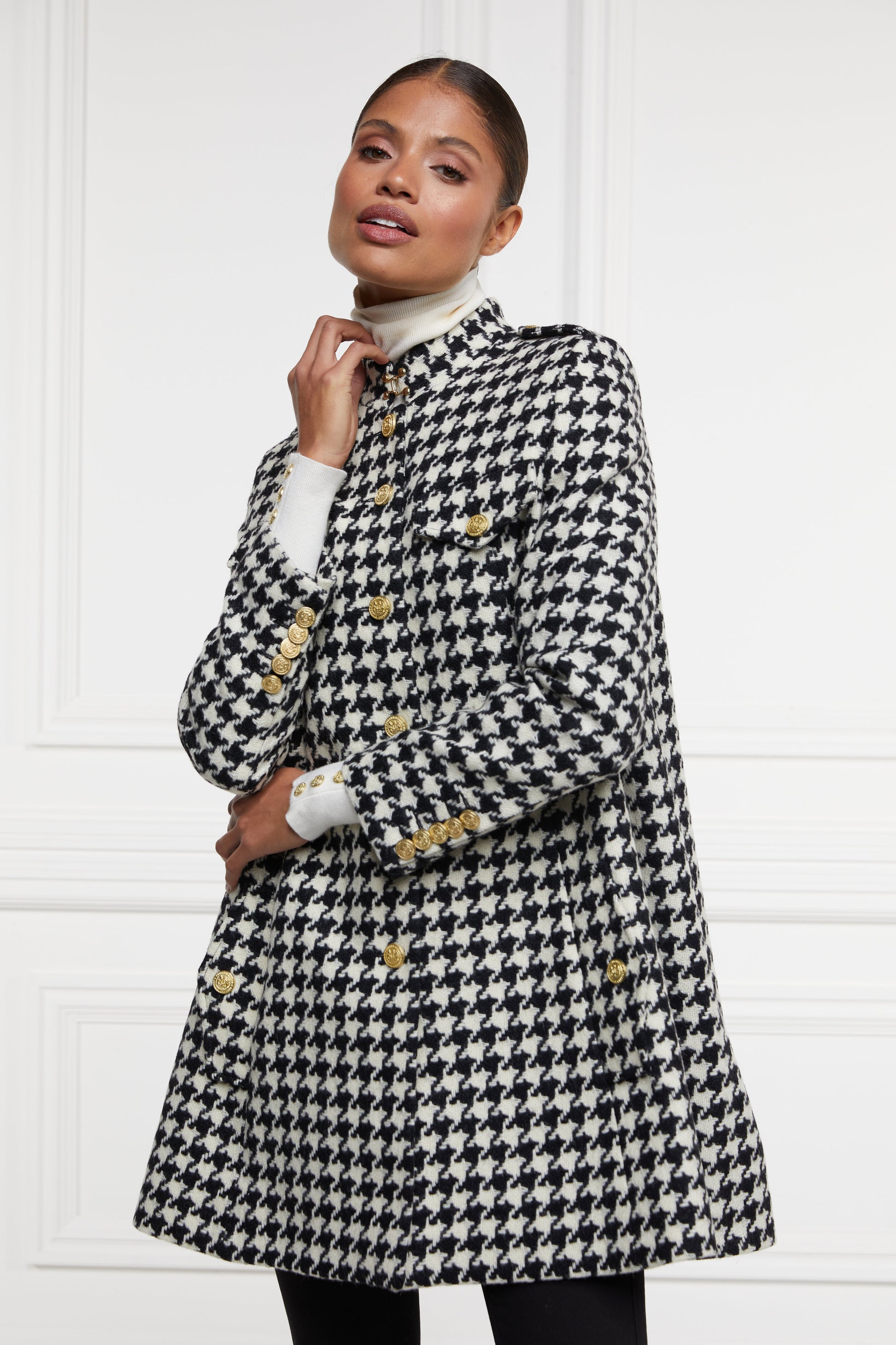Our versatile midi dress is just as comfortable as it is flattering. The chevron ribbed fabric creates a body-contouring fit while the high roll neck ensures you’ll feel cosy all winter. Detailed with our iconic Holland Cooper metal hardware on both the shoulders and cuffs.