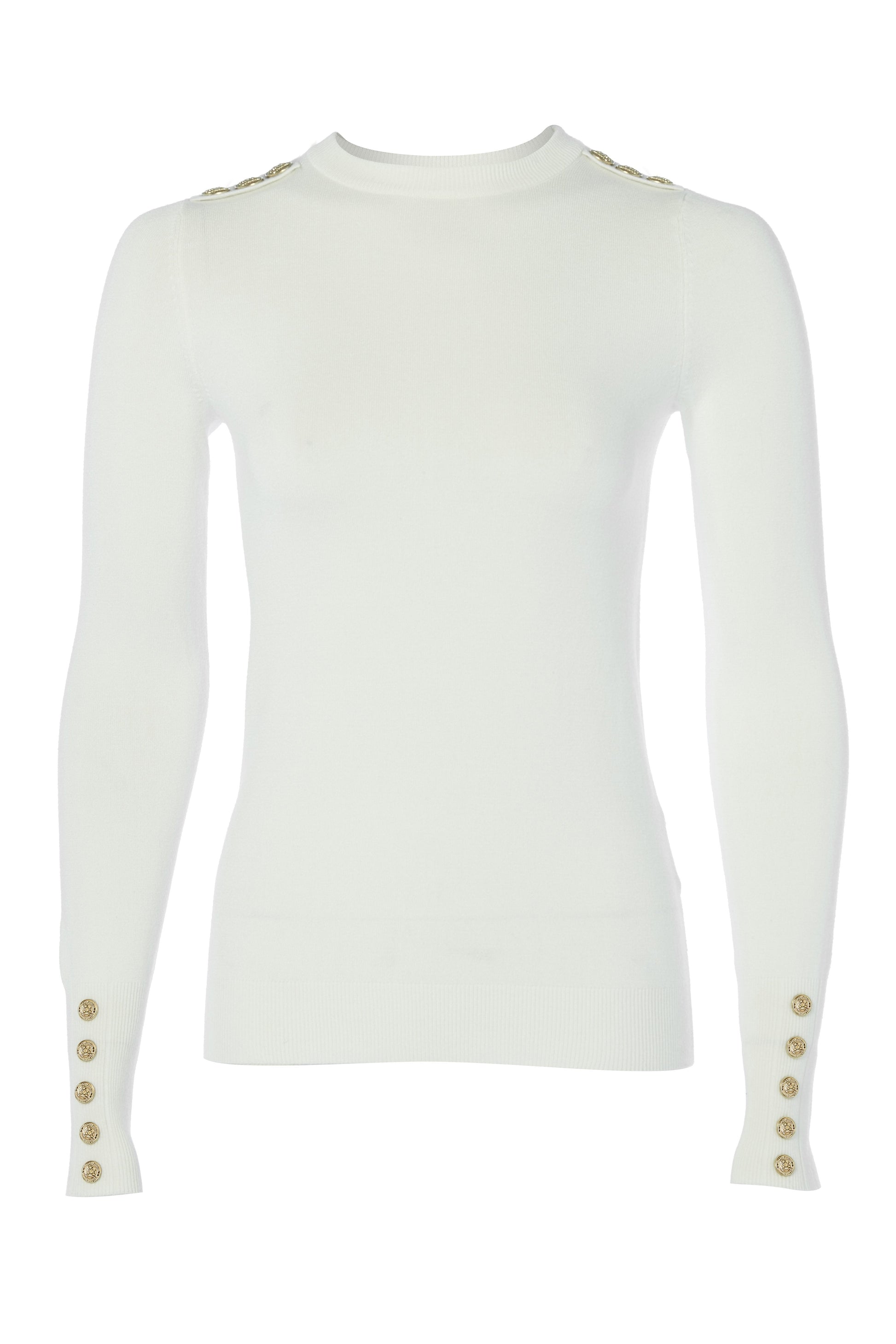Introducing HC's update to the buttoned knit crew neck, now with our signature hardware on both shoulders, to form part of your signature look. Complete every outfit with this stylish, classic and easy to wear wardrobe staple.