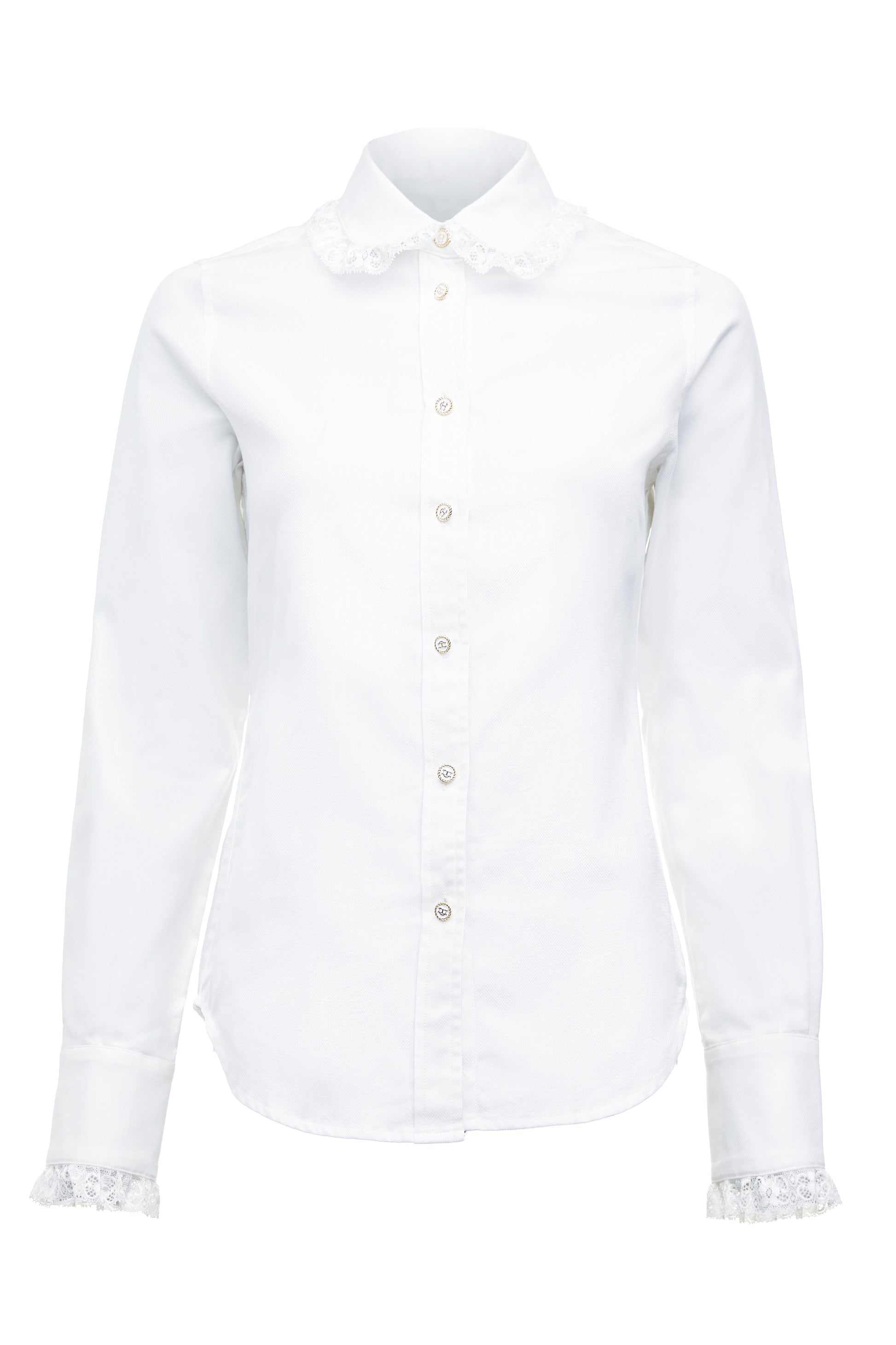 The Rose Shirt puts a romantic pin on a classic white shirt, and the results are the epitome of beauty and femininity. It's made from sumptuously soft cotton and finished with delicate lace trim around the collar and cuffs.