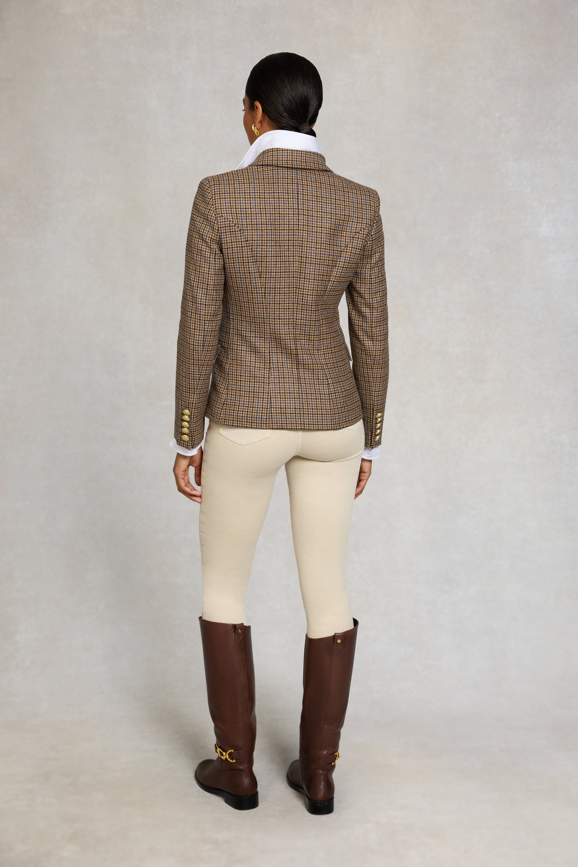Elevated for the season in a new, richly textured tweed, this blazer is crafted from wools woven in the UK and tailored to perfection in England. Designed with a slim, double-breasted silhouette, it features HC's signature crested rivets and bold lapels for a refined yet confident aesthetic. Precisely cut to ensure a sharp profile whether worn open or closed, the blazer is fully lined with a luxurious stretch lining for comfort and ease. Finished with subtly placed hip pockets, this timeless piece of British-made tailoring is a true investment in style.