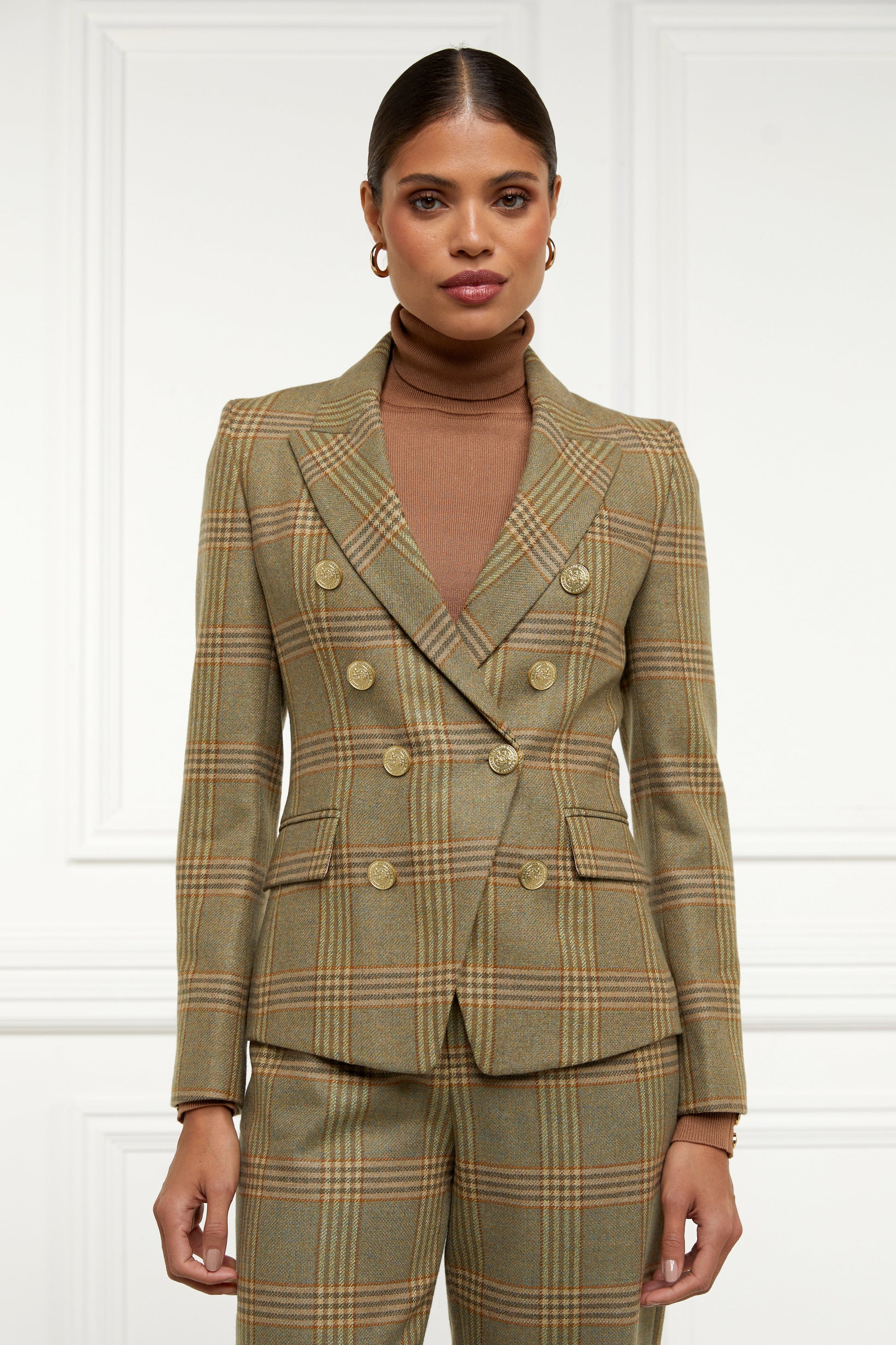 Made from wools woven in the UK, this blazer has a slim, double-breasted silhouette featuring HC's signature crested rivets. Precisely tailored to ensure a sharp and tailored profile worn open or closed, each blazer has been fully lined with a luxury stretch lining for comfort. Elevated by bold lapels and subtly placed hip pockets, this wardrobe staple has been hand cut and made entirely in England. To ensure your piece of British Made Tailoring is kept safe on its journey to you, we are now including a complimentary HC garment bag with this piece.